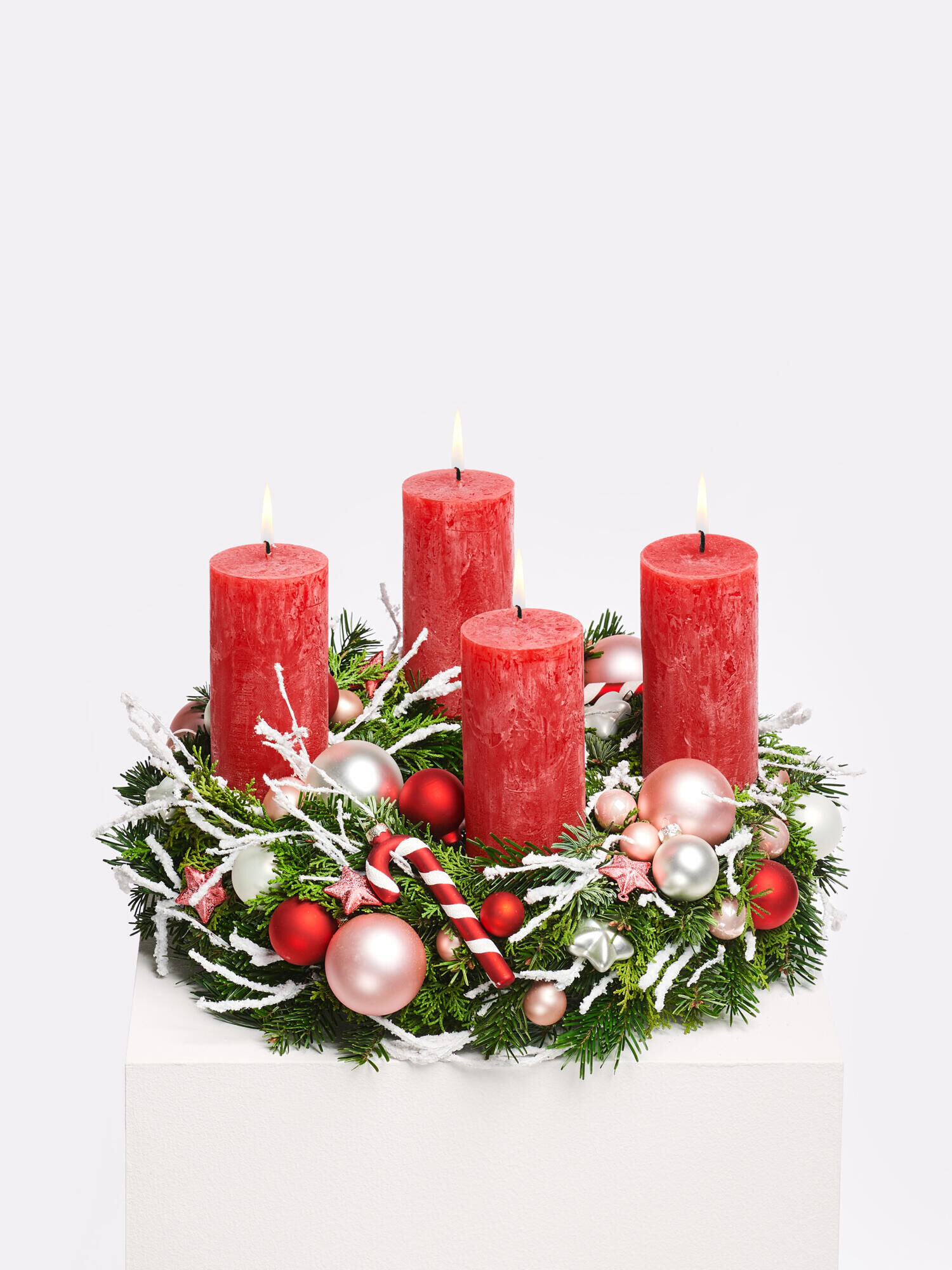 Den weihnachtlichen Kranz „Adventsglück“ verschicken mit dem Fleurop Blumenversand. ➤ Jetzt online bestellen!