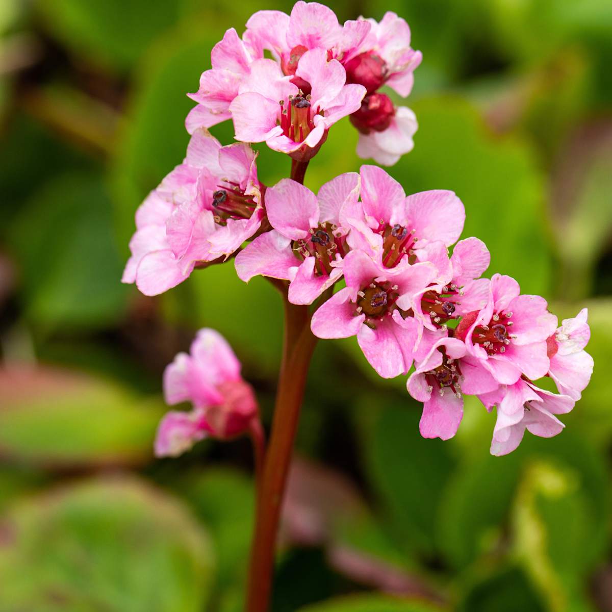 Hast du auch so Stellen im Garten, die im Winter irgendwie immer düster und leer aussehen? Aber dagegen ist ja zum Glück ein Kraut gewachsen – sorry, natürlich ist es eine wunderbare Staude. Genauer gesagt die Bergenie. Ihre eiförmigen, dunkelgrünen Blätter sind wintergrün, auch wenn sie sich im Herbst etwas rötlich färben. So sorgt sie auch in der düsteren Jahreszeit für Farbe. Bergenia cordifolia, wie sie sich botanisch nennt, wird wächst aufrecht, ausladend und wird etwa 50 cm hoch und 45 cm breit. Ach ja, und von April bis Mai kannst du dich mit viele Insekten über ihre rosafarbenen Blüten freuen. Ausreichend Wasser, dazu ein halbschattiger bis schattiger Standort, mehr braucht die Bergenie nicht um munter zu wachsen.