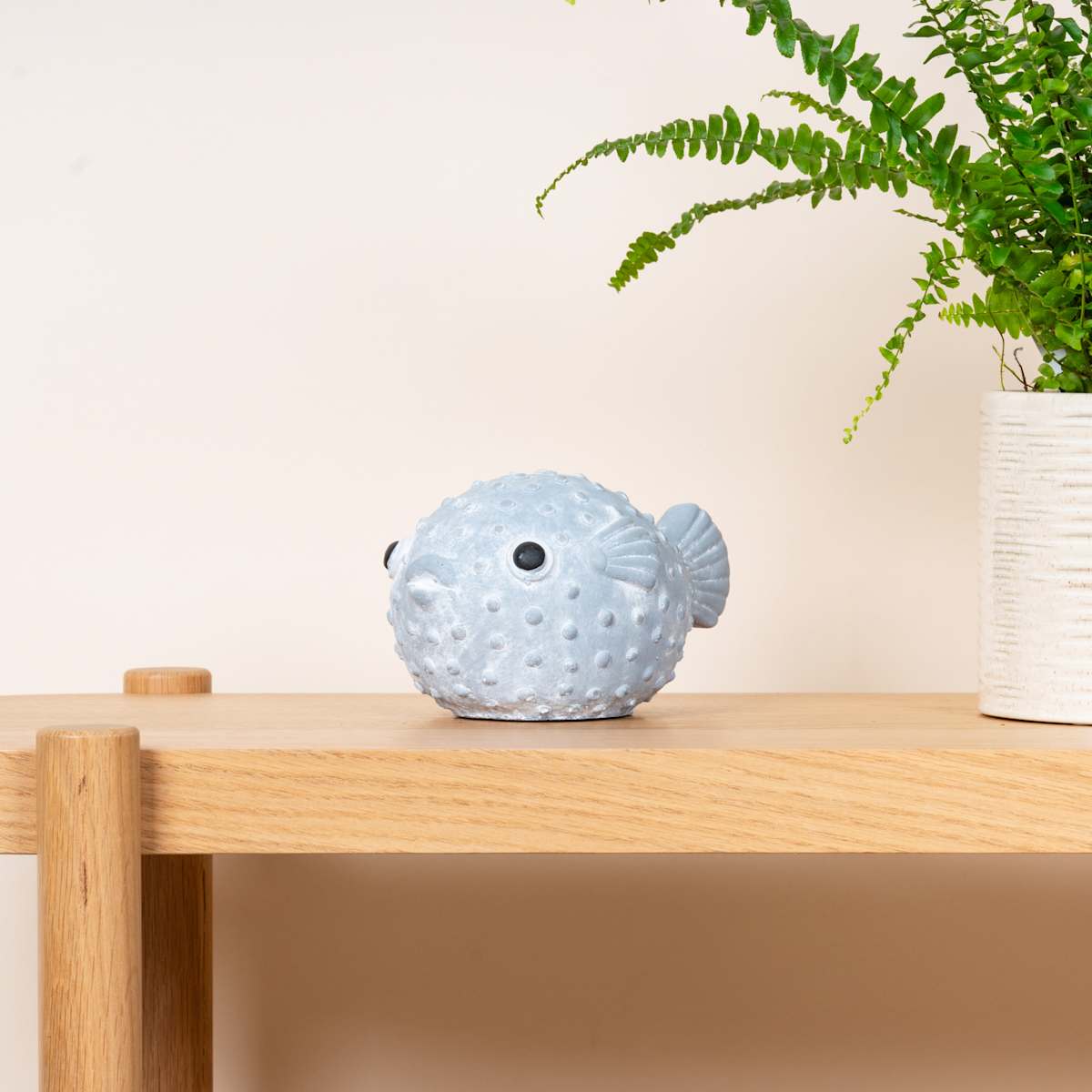 Kein Dekoobjekt passt besser in dein maritimes Badezimmer als dieser 18,5 cm lange und 12,5 cm breite Fisch. Bevor der Kugelfisch dir aus dem Regal schwimmt, muss schon so einiges passieren. Getrost kannst du dem 1480 g schweren und vor allem treuen Kugelfisch vertrauen, dass er dich weder mit Fütterungsforderungen noch mit Fluchtversuchen belästigen wird. Gegen seinen süßen Charme bist du allerdings nicht gefeit, doch den hast du ja mitgekauft.