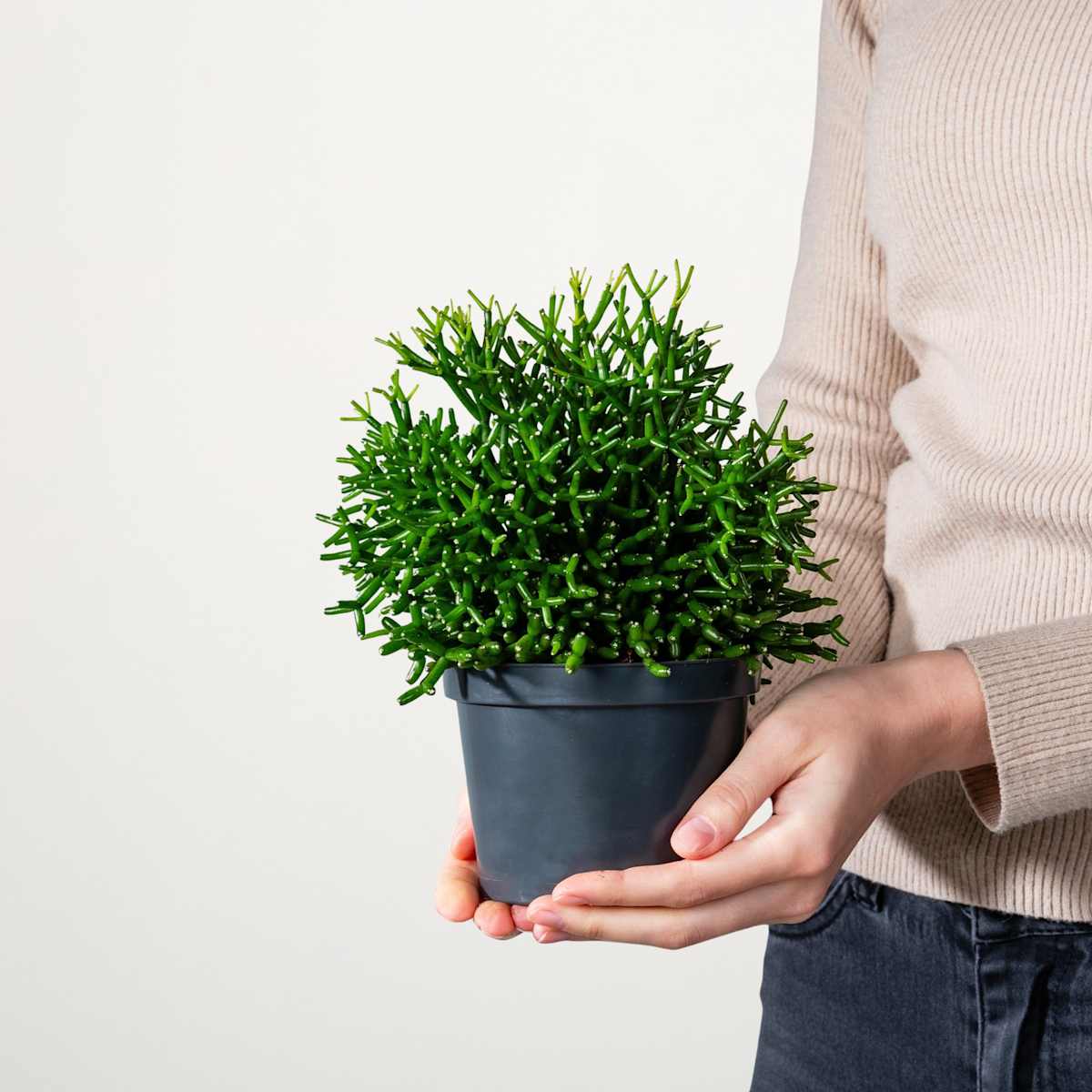 Botanisch nennt sich dieser Binsenkaktus Hatiora bambusoides. Und ein bisschen sieht er ja auch aus, wie ein kleiner Bambushain. Mit seinen grünen, dickfleischigen Zweiglein könnte er aber auch einem Korallenriff entstammen. Der Look dieser etwa 30 cm hoch und 20 cm breit werden Sukkulente ist halt einzigartig und ganz speziell! Übrigens kann der Binsenkaktus das noch toppen, wenn e seine bezaubernden, gelben Blüten hervorbringt. Lass dich überraschen!Auch wenn es dir nie passieren wird, keine Sorge, wenn du den Binsenkaktus ‚Bambusoides‘ einmal vergessen hast. Er ist ein echter Überlebenskünstler. Wassersparen ist bei ihm vorprogrammiert und er übersteht Trockenperioden mit Links. Das Einzige, was er nicht abkann, ist pralle Sonne, also stelle ihn an einen halbschattigen Platz.
