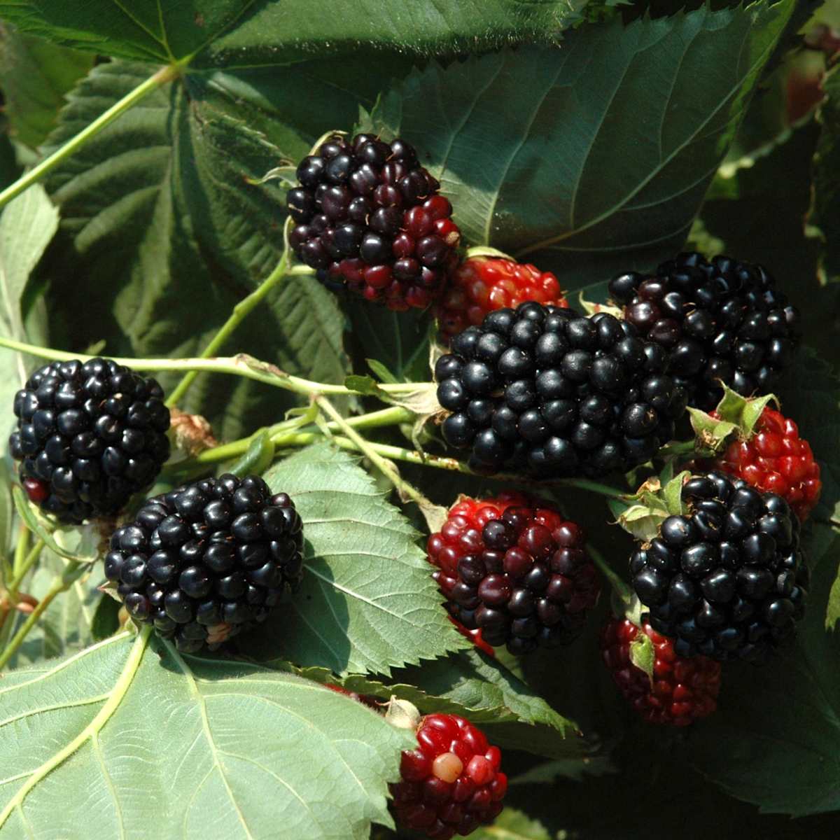 Schwarze Himbeeren sind doch eigentlich Brombeeren, oder? Da kennst du die Himbeere ‚Black Jewel‘ noch nicht. Sie trägt ab Ende Juni aromatisch schmeckende Beeren, die aussehen wie Himbeeren – aber eben schwarz sind. Tja, sowas hat auch nicht jeder. Was du sonst noch wissen musst? Rubus idaeus, wie sie sich botanisch nennt, wird bis zu 2 m hoch und 1 m breit und ihre weißen Blüten im Frühjahr sind ein schöner Anblick und für Bienen und andere Insekten eine leckere Futterquelle. Ausreichend Wasser, dazu ein halbschattiger Standort, mehr braucht die Himbeere ‚Black Jewel‘ nicht um munter zu wachsen.