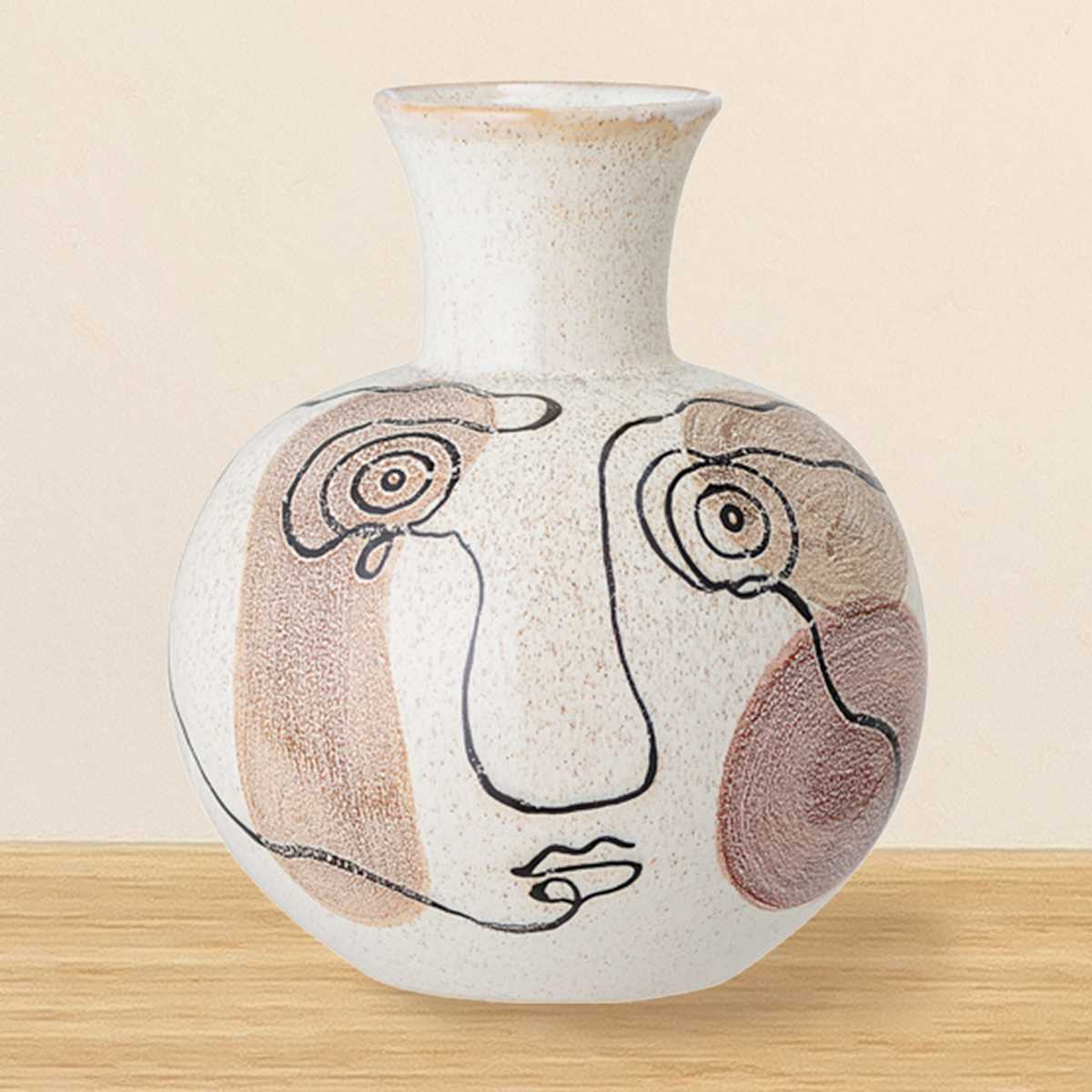 Trendige Steingutvase – handbemalt in einzigartiger Optik. Style sie als Einzelstück oder in einer Gruppe mit anderen Wohnaccessoires für einen perfekten und modernen Look.