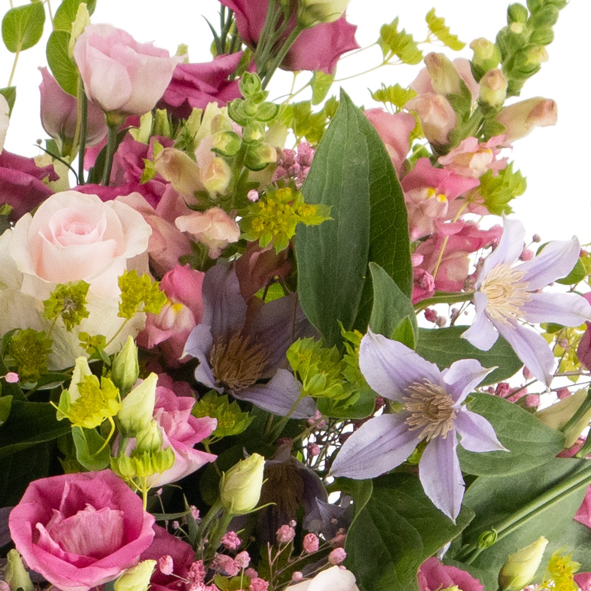 Romantik in jedem Detail Der Blumenstrauß Märchentraum bezaubert mit einer harmonischen Komposition aus zarten rosa Rosen und verspielten Blütenakzenten. Dieses Arrangement versprüht eine romantische Eleganz und bringt einen Hauch von Märchenwelt in jeden Raum. Perfekt als Geschenk für einen besonderen Menschen oder als dekorativer Blickfang, der Freude und Stil vereint. Der Blumenstrauß Märchentraum vereint die sanfte Schönheit rosa Rosen mit einer Vielfalt an liebevoll arrangierten Blüten. Begleitet von filigranem Schleierkraut und zarten lila Akzenten entsteht ein Arrangement, das Leichtigkeit und Eleganz ausstrahlt. Die dezente Farbpalette macht diesen Strauß zu einem idealen Geschenk für romantische Anlässe oder um einfach Danke zu sagen. Die sorgfältig ausgewählten Blumen bringen lange Freude und lassen sich mühelos in jeden Einrichtungsstil integrieren. Ob als dekorativer Mittelpunkt oder zarter Gruß – der Blumenstrauß Märchentraum verwandelt jeden Tag in einen besonderen Moment. Bestelle jetzt und lasse dich von diesem Strauß verzaubern!