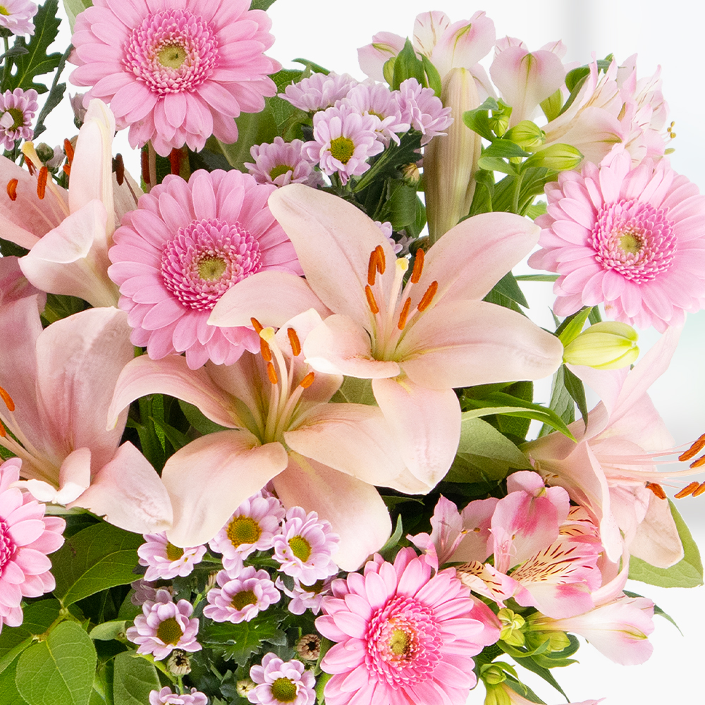 Blütentraum: Ein Blumenstrauß in Rosa Dieser Strauß ist ein Traum in Rosa. Die großen Blüten verschiedenster Blumen machen ihn zu einem beliebten gute-Laune-Geschenk. Deshalb ist unsere Blumenstrauß Rosa Gerbera auch eine absolute Geschenkempfehlung für Unentschlossene. Gut zu wissen: Lilien verströmen einen herrlichen Duft. Neben fröhlichen Gerbera beinhaltet unser Blumenstrauß Rosa Gerbera auch Lilien, Chrysanthemen und Inkalilien. Der Blumenstrauß passt mit seiner fröhlichen Kombination aus Blumen zu vielen Anlässen. Seine zarten Farben fügen sich in jede Wohnlandschaft ein und wirken frühlingsfrisch. Dieser wunderschöne Blumenstrauß enthält die beliebtesten Blumen und wird damit zum perfekten Geschenk. Ob als Dankesgruß oder als nette Geste: Über die beliebten rosa Gerbera und Lilien freut sich wirklich jeder. Jetzt einen rosa Blumenstrauß verschenken!