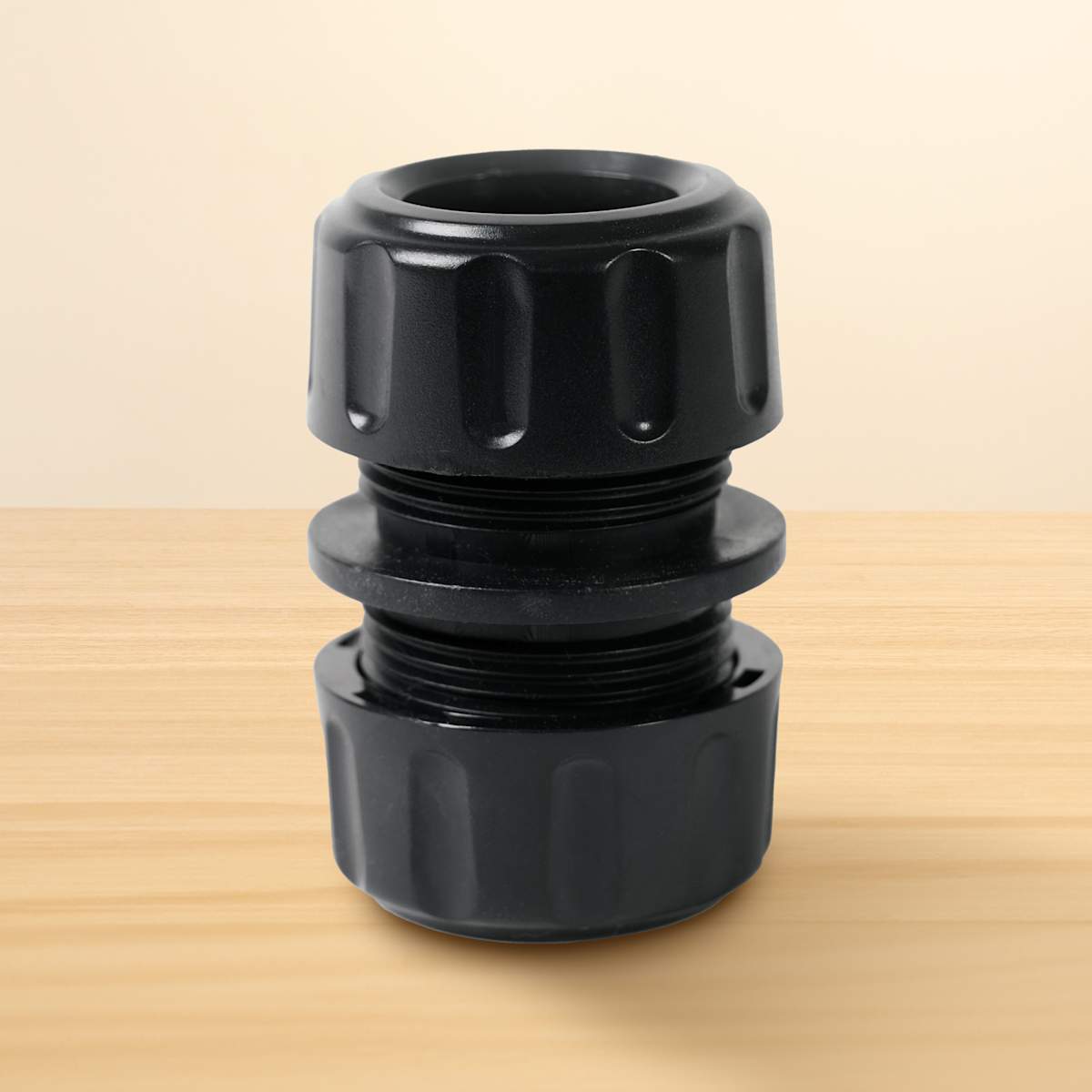 Doppelkupplung, die zwei 13-mm-Kunststoffschläuche miteinander verbindet (funktioniert nicht bei Textilschläuchen). Hochwertiges Material.