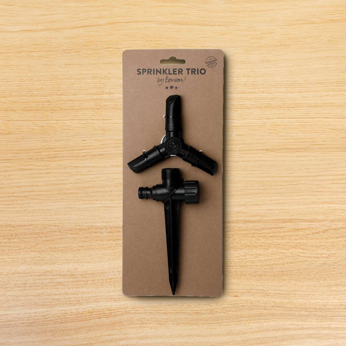 Dreiarmige Drehscheibe in guter Qualität Wasser Sprinkler. Einfache Befestigung im Boden. Gleichmäßige Wasserverteilung. Zwei-Wege-Anschluss. Maße: 13,5 x 13,5 x 23 cm.