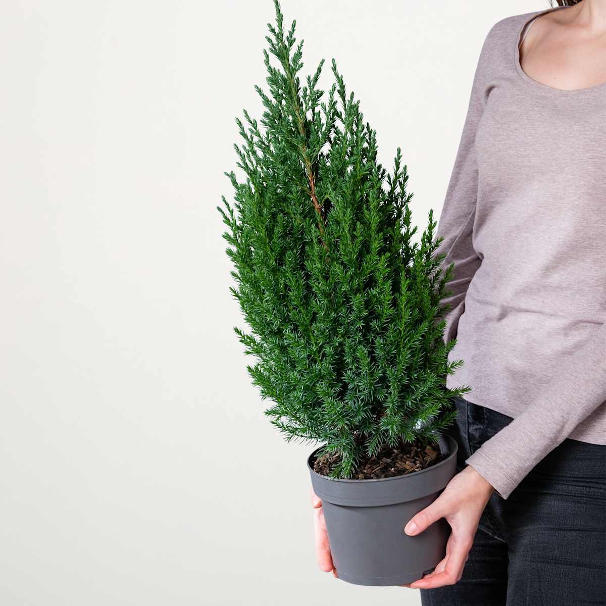 Bevor hier noch jemand nach dem Kontrabass fragt: Es geht hier um Pflanzen, und zwar um den wunderbaren Chinesischer Wacholder ‚Stricta‘. Der heißt so, weil seine wilden Verwandten der Art Juniperus chinensis in Ostasien zu Hause sind. Und weil er so schön strikt aufrecht wächst. Er kann es immerhin auf 4 m Höhe bei 1,5 m Breite bringen. Mit den immergrünen, blau-grünen Nadeln bietet sich dir ein einmaliger Anblick – in dreifacher Ausführung. Also ab in den Garten damit, vielleicht erzählen sie dir ja auch noch was…Einzeln oder zu dritt, der Chinesischer Wacholder ‚Stricta‘ braucht ausreichend Wasser, dazu ein sonniger Standort, und er ist zufrieden und wächst munter vor sich hin.