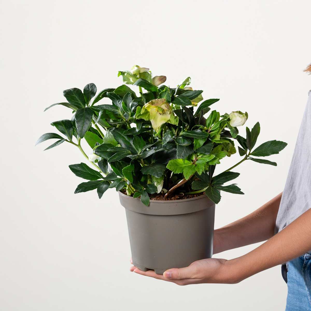 Hier kommt deine Sonne für die dunkle Jahreszeit. Zu behaupten, dass die Weiße Christrose ‚Wintersun‘ leuchtet, wäre zwar übertrieben, aber ihre schneeweißen Blüten, die diese wintergrüne Staude von November bis März hervorbringt, haben schon eine hohe Strahlkraft! Besonders im Kontrast zu ihrem dunkelgrünen Laub. Du kannst mit Helleborus niger, so der botanische Name, nicht nur deine Beete aufhellen, mit etwa 30 cm Wuchshöhe und- breite passt sie auch prima in Blumenkübel und Balkonkästen!Auch wenn sie Sonne im Namen trägt – die Weiße Christrose ‚Wintersun‘ bevorzugt halbschattige Standorte. Dazu immer ausreichend Wasser, nur bitte keine Staunässe, und sie lässt ihre Blüten strahlen.