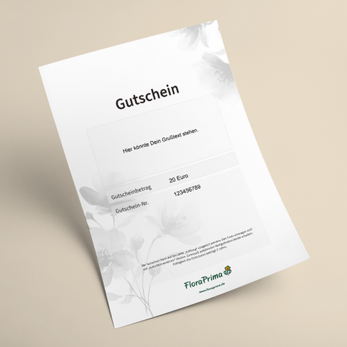 In Momenten des Abschieds fehlen oft die richtigen Worte. Dieser Gutschein bietet Ihnen die Möglichkeit Ihre Anteilnahme auf eine besonders einfühlsame Weise auszudrücken. Ob für eine kleine Auszeit einen Blumengruß ein stilles Gedenken oder eine liebevolle Erinnerung ? der Gutschein kann individuell eingesetzt werden und schenkt den Hinterbliebenen Raum für Trost und Erinnerung.Du kannst den Wert frei wählen (15 – 100 ?). Außerdem ist der Gutschein persönlich gestaltbar mit einer individuellen Botschaft.Ein Gutschein der mehr ist als ein Geschenk ? eine stille Umarmung in einer schweren Zeit. Hersteller:FloraPrima GmbHDidderser Str. 2838176 Wendeburginfo@floraprima.de
