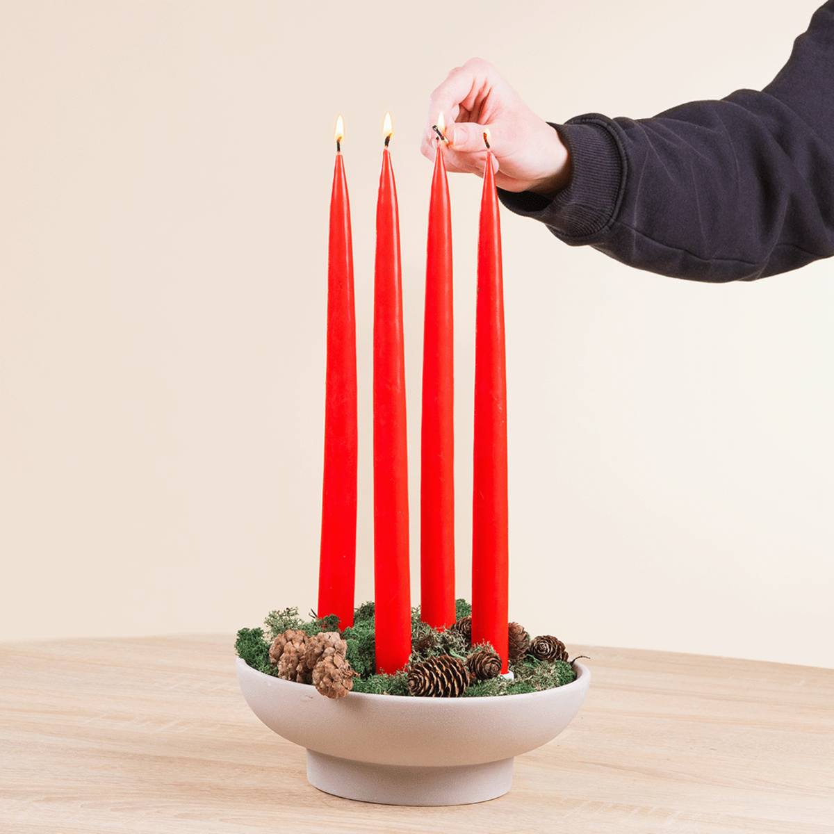 Mit unserem DIY-Set Adventsgesteck Red Allure erschaffst du eine festliche Meisterleistung, die die Magie von Weihnachten in dein Zuhause bringt. Die Keramikschale mit einem Durchmesser von 25 cm bildet die stilvolle Basis für dieses kreative Abenteuer. Ergänzt wird sie durch Islandmoos in Dunkelgrün, vier handgezogene, knallrote Stabkerzen mit einer Länge von 35 cm und einen Bund duftender Zedernzweige. Die beiliegende Schritt-für-Schritt-Anleitung begleitet dich sicher durch den kreativen Prozess. Sicherheit steht bei uns an erster Stelle: Bitte verwende stets eine feuerfeste Unterlage und halte brennende Kerzen immer im Blickfeld. Mit unserem DIY Adventsgesteck schaffst du eine festliche Atmosphäre, die Herzen erhellt. Lass dich von der zauberhaften Stimmung dieses DIY-Gestecks verzaubern und erlebe ein Weihnachtsfest voller Glanz und Zauber.