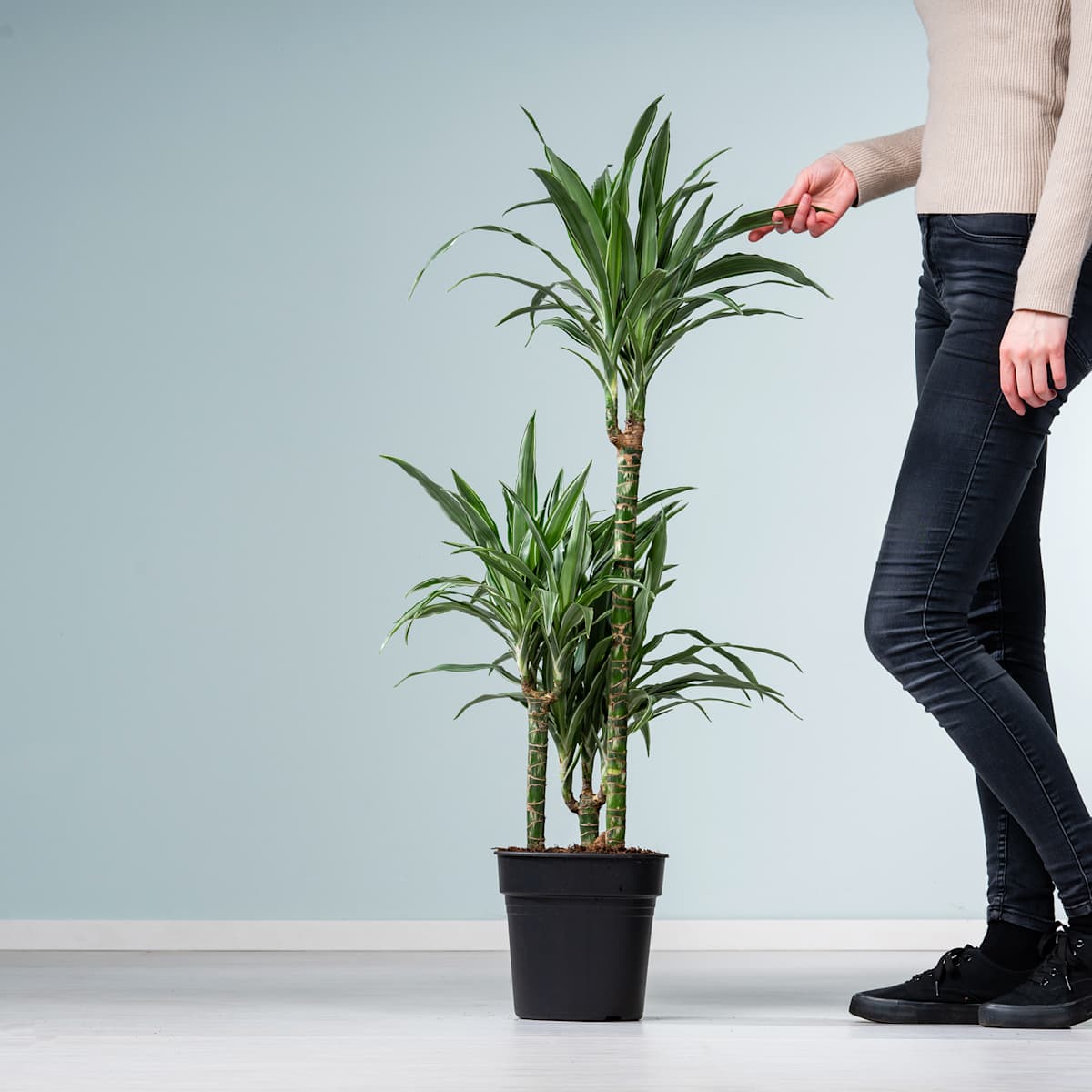 Riesig groß und mächtig steht er da und schwingt seine weiß gestreiften Blätter, um Gutes zu tun und die Luft von Schadstoffen zu befreien. Klingt irgendwie wie in Märchen? Ist aber wahr und wenn überhaupt dann nur eine Spur übertrieben. Der Drachenbaum ‚Warneckei‘ ist eben ein prächtiger Vertreter der Art Dracaena deremensis. Seine Blätter können tatsächlich die Luft reinigen und mit seinem aufrechten Wuchs kann er schon mal 2 m Höhe und 1 m Breite erreichen. Der Drachenbaum ‚Warneckei‘ muss regelmäßig gegossen werden. Wenn du darauf achtest, dass die Erde immer leicht feucht ist, belohnt er dich mit kräftigem Wuchs. Am besten kann er das an einem sonnigen bis halbschattigen Standort.