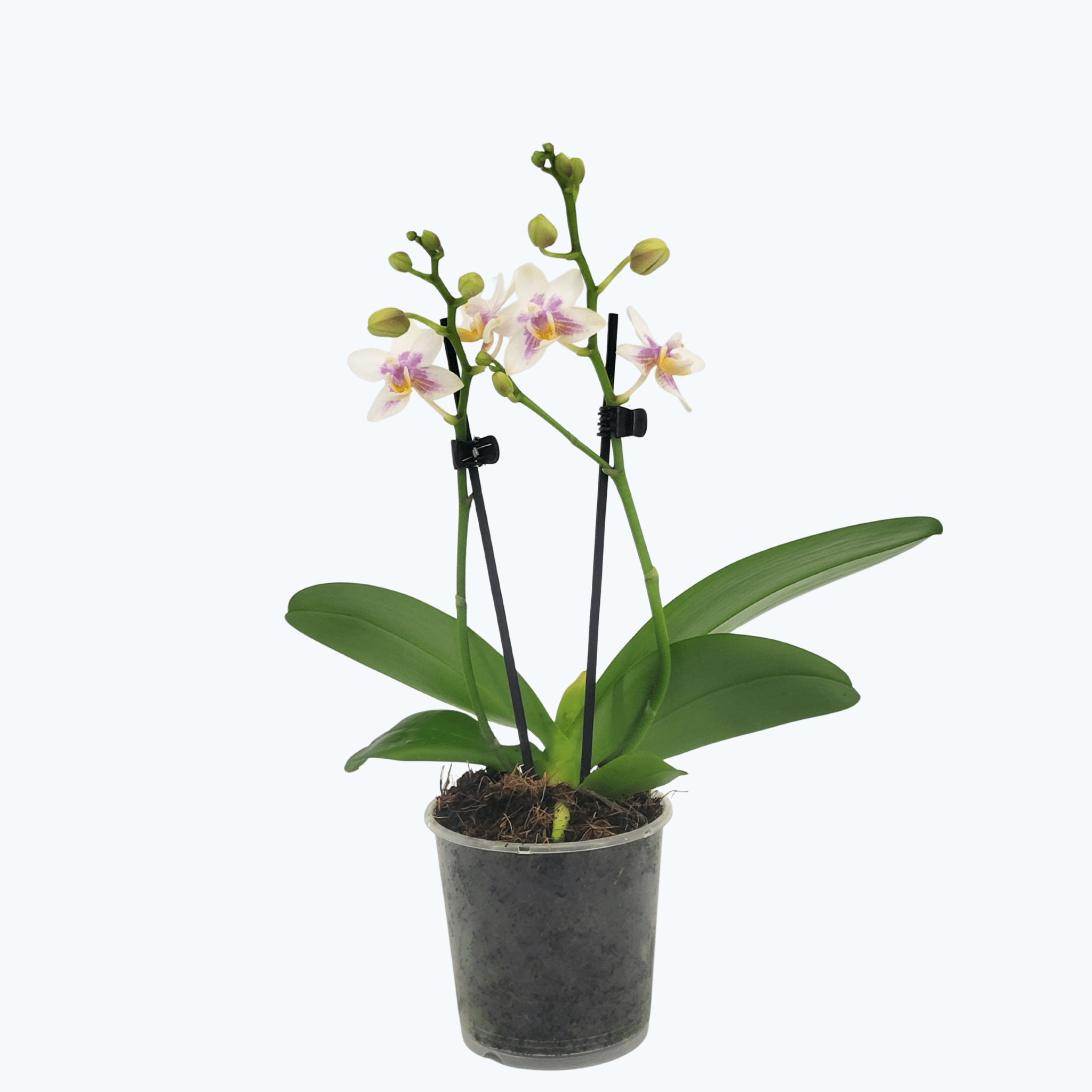 Die Phalaenopsis Martina zeigt leuchtend gelbe Blüten mit violetter Mitte und auffallender gelber Lippe. Ihr frisches, grünes Laub verleiht ihr ein vitales Erscheinungsbild und an sonnigen Tagen verströmt sie einen dezenten Duft. Durch ihren kräftigen Wuchs und ihre hohe Widerstandsfähigkeit ist sie besonders pflegeleicht und langlebig – ideal für alle, die Freude an gesunden und blühfreudigen Orchideen haben.