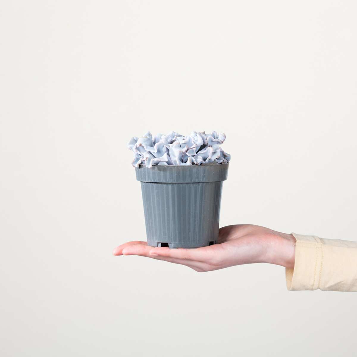 Die Echeverie ‚Crispy Beauty‘ macht es einfach mal anders als andere Echeverien. Ok, sie ist auch eine rosettenartige Pflanze und hat mit etwa 30 cm Wuchshöhe und 40 cm Breite auch prima Echeverien-Maße. Selbst die matte silberweiße Farbe der dickfleischigen Blätter ist unter ihresgleichen nicht selten. Aber dieser Blattrand! Neckisch kräuselt sie ihn, so als ob jedes ihrer Blätter mit Rüschen versehen ist. Und mal ehrlich, das sieht doch echt cool aus, oder? Egal wo du sie haben möchtest, ob im Wohnzimmer oder Wintergarten, sie macht immer eine gute Figur. Auch wenn es dir nie passieren wird, keine Sorge, wenn du die Echeveria ‚Crispy Beauty‘ einmal vergessen hast. Als echte Sukkulente ist sie eine Überlebenskünstlerin. Nur ab und an etwas Wasser, mehr braucht sie nicht und mit einem sonnigen Standort ist sie voll und ganz zufrieden.