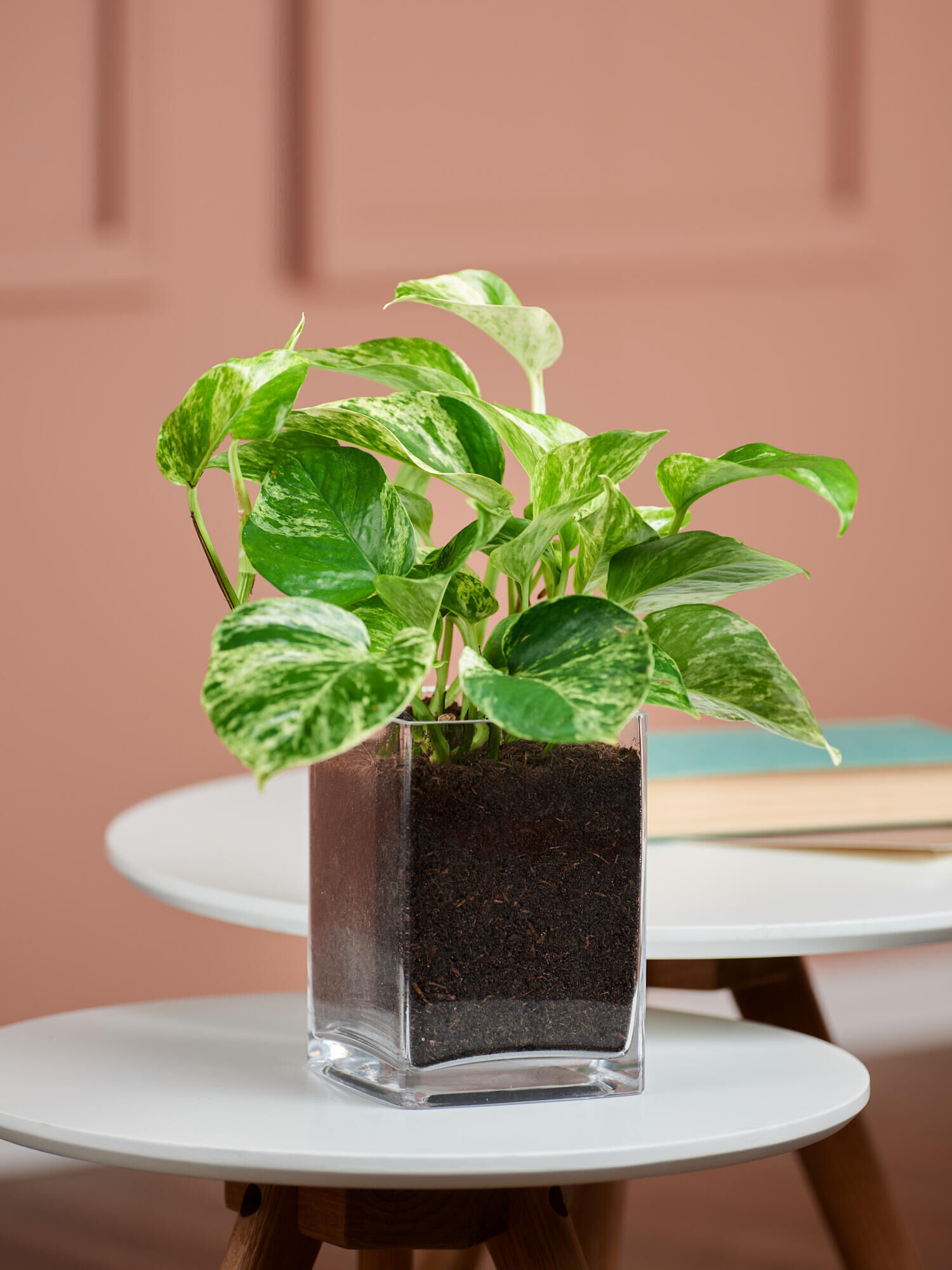 Mit ihren herzförmigen Blättern macht diese pflegeleichte Efeutute (Epipremnum) in jeder Einrichtung eine gute Figur. Diese luftreinigende Zimmerpflanze wird in einer eleganten Fleurop-Vase mit Blumenerde geliefert. Die Efeutute gedeiht am besten bei Zimmertemperaturen zwischen 20 und 25 °C. Ein halbschattiger bis heller Standort ohne direkte Mittagssonne ist ideal. Die Erde sollte leicht feucht, aber nicht zu nass sein. Ab und zu kann die Pflanze mit einem leichten Wassernebel besprüht werden. Hängend wird die Efeutute bis zu 100 cm, rankend bis zu 200 cm hoch.