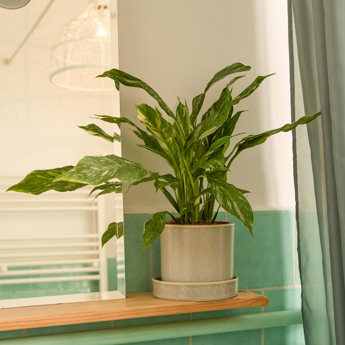 Bei deiner letzten Dschungel-Expedition bist du auf einen unermesslichen Schatz gestoßen. Und ganz abenteuerlustig, wie du manchmal bist, hast du ihn über Umwege zu dir nach Hause in dein Wohnzimmer geholt. Jetzt hast du Blätterweise Diamanten. Klingt doch toll, oder? Und das Einblatt ‚Diamond‘ ist auch wirklich ein toller Vertreter der Art Spathiphyllum floribundum. Seine lanzettlichen Blätter sind mit weißen Sprenkeln übersäet. Bei einem Wuchs von bis zu 60 cm Höhe und Breite sieht das mit der richtigen Perspektive echt aus wie ein Haufen funkelnder Diamanten, über dem auch noch weiße Blüten thronen. Das Einblatt ‚Diamond‘ muss regelmäßig gegossen werden. Wenn du darauf achtest, dass die Erde immer leicht feucht ist, belohnt es dich mit kräftigem Wuchs. Am besten kann es das an einem halbschattigen bis schattigen Standort, wenn es dort nicht zieht.