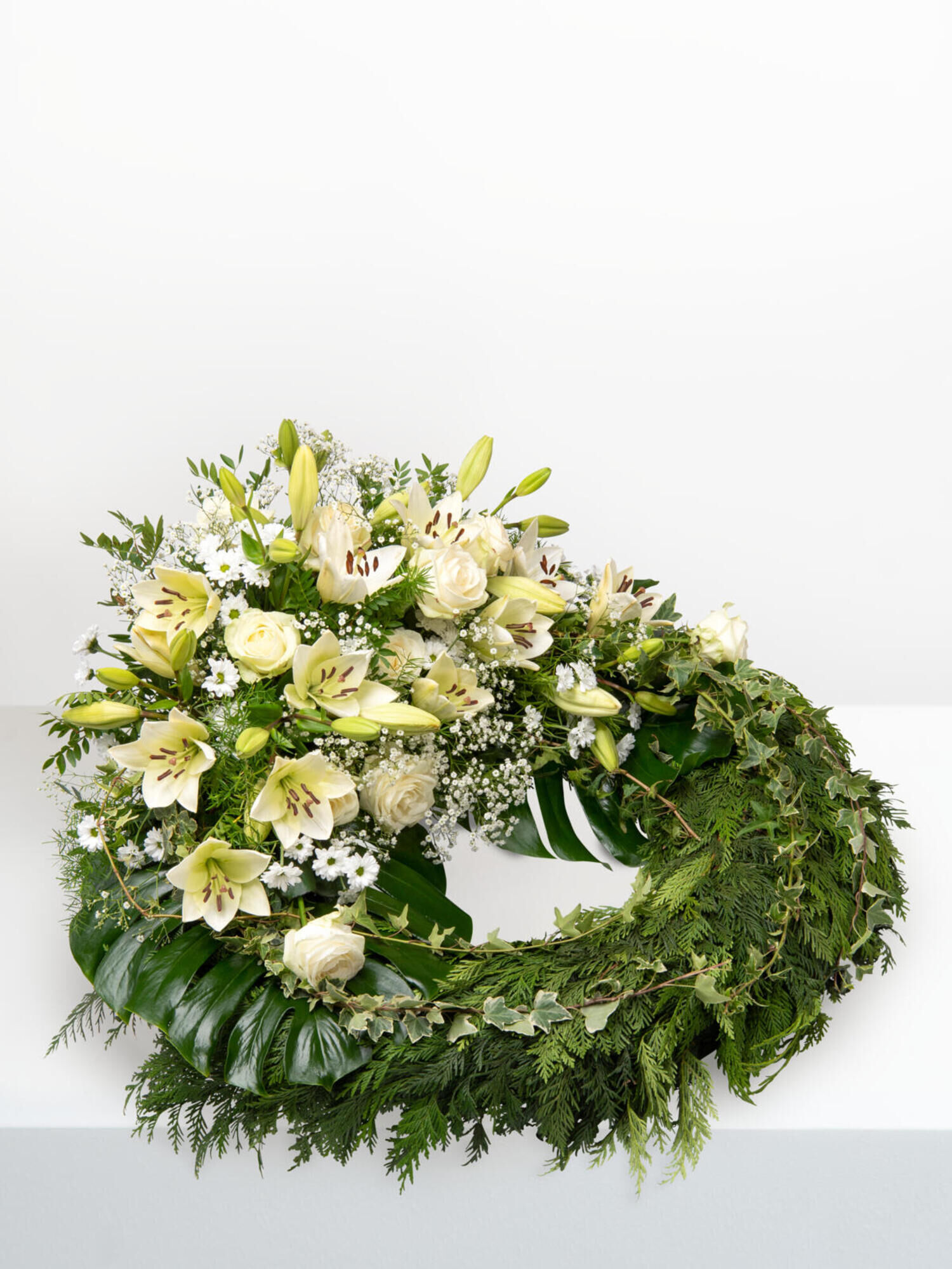 Trauerkranz in Weiß online versenden mit Fleurop Blumenversand. ✔ vom Floristen vor Ort geliefert ✔ Frische-Garantie ➤ Jetzt online bestellen!