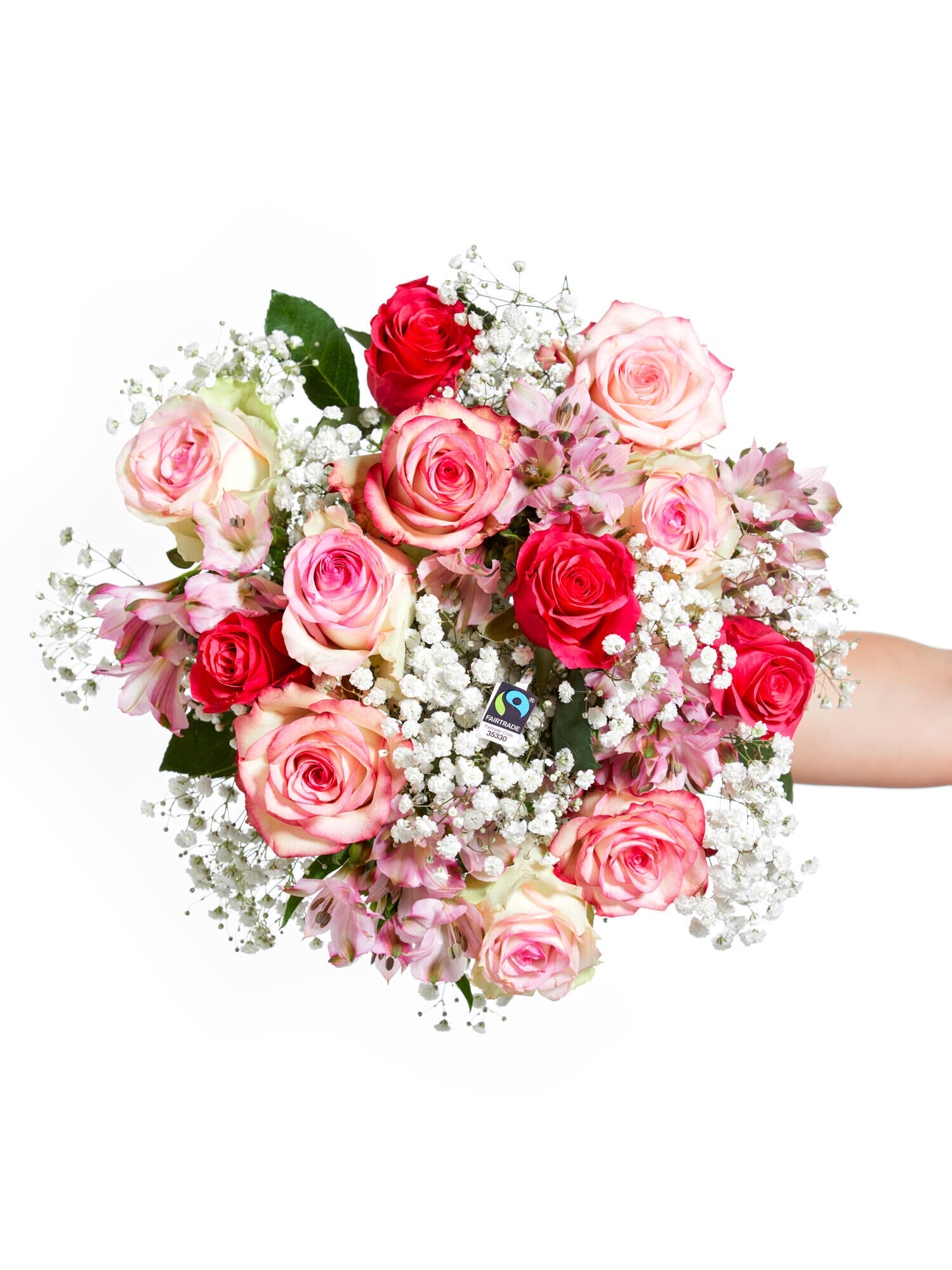 Den Fairtrade-zertifizierten Rosenstrauß „Feenstaub“ verschicken mit dem Fleurop Blumenversand. ➤ Jetzt online bestellen und Liebe verschenken!