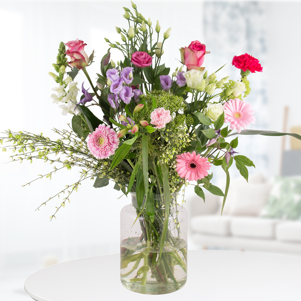 Ein Feldblumenstrauß in sommerlichem Pastell Unser Feldblumenstrauß Sommerwiese ist genau das richtige Geschenk für einen tollen Menschen. Die Zusammenstellung der pastellfarbenen Nelken, gepaart mit Rosen, Gerbera, Löwenmäulchen und Lisianthus lassen jeden Blumen-Fan staunen. Der Feldblumenstrauß ist in drei unterschiedlichen Größen erhältlich. Feldblumensträuße sind besonders im Sommer ein Hit. Ein Feldblumenstrauß besteht aus vielen unterschiedlichen Blumensorten, die zusammen farblich harmonieren und an eine Sommerwiese voller bunter Feldblumen erinnern. So entsteht unser Feldblumenstrauß Sommerwiese. Dieser hochgebundene und moderne Strauß wirkt wie wild gepflückt und macht sich in einer hohen Vase arrangiert besonders gut.