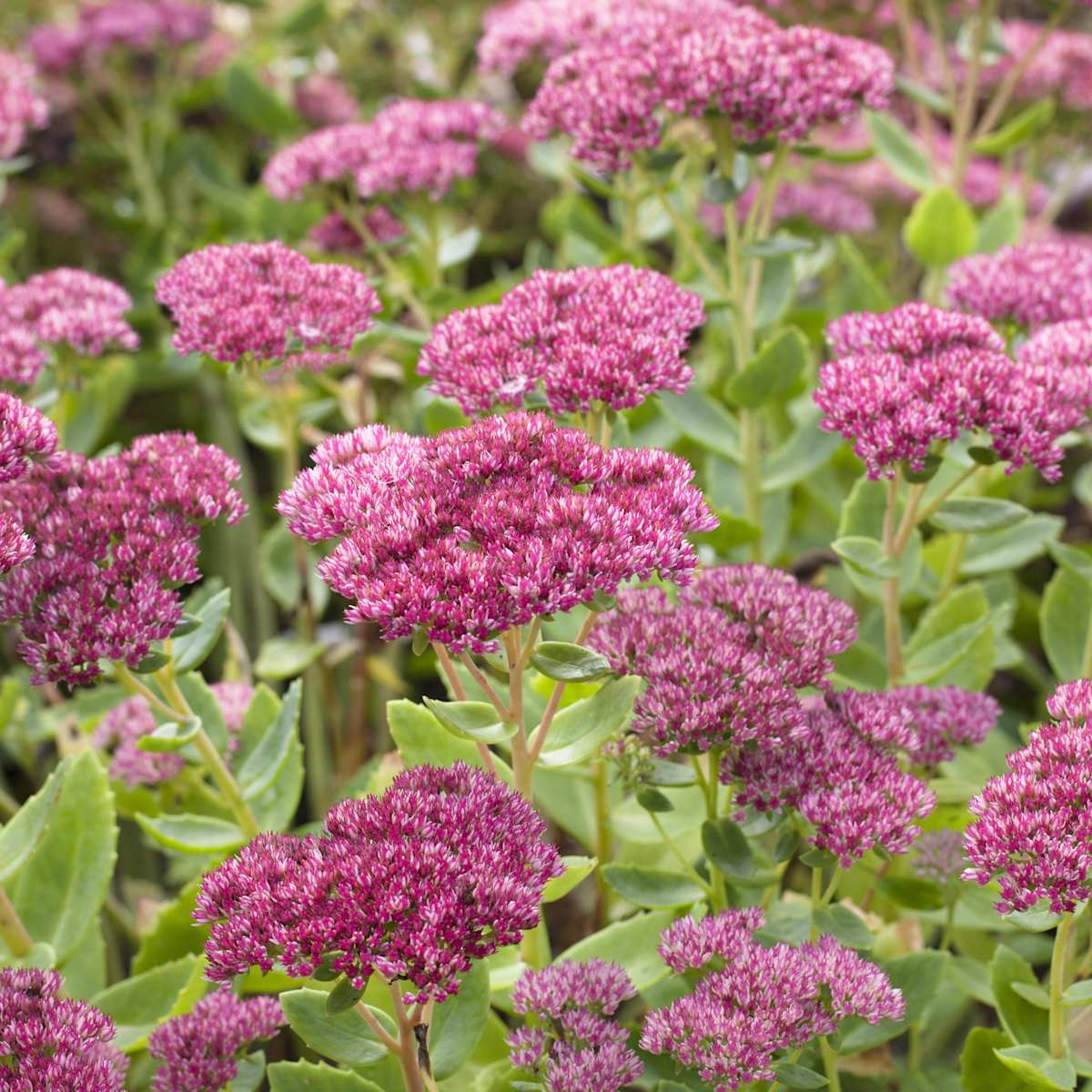 Viele legen sich im Herbst eine dicke Fettschicht an, um gut durch den Winter zu kommen. Hühner gehören da eigentlich nicht zu und Pflanzen schon gar nicht. Trotzdem trägt die Fetthenne ‚Herbstfreude‘ im Herbst so richtig dick auf. Sedum telephium, so der botanische Name, schmückt sich von September bis Oktober mit dunkelrosafarbenen Blüten. Übrigens wird es auch Hohes-Fettblatt genannt. Hoch, weil es etwa 70 cm groß und 60 cm breit wird, und Fettblatt, weil es schöne hellgrüne, dickfleischige Blätter hat. Die Fetthenne ‚Herbstfreude‘ speichert kein Fett, aber Wasser. Deshalb reicht es, wenn sie nur ab und an etwas Wasser bekommt. Dazu ein sonniger Standort, mehr braucht sie nicht um munter zu wachsen.