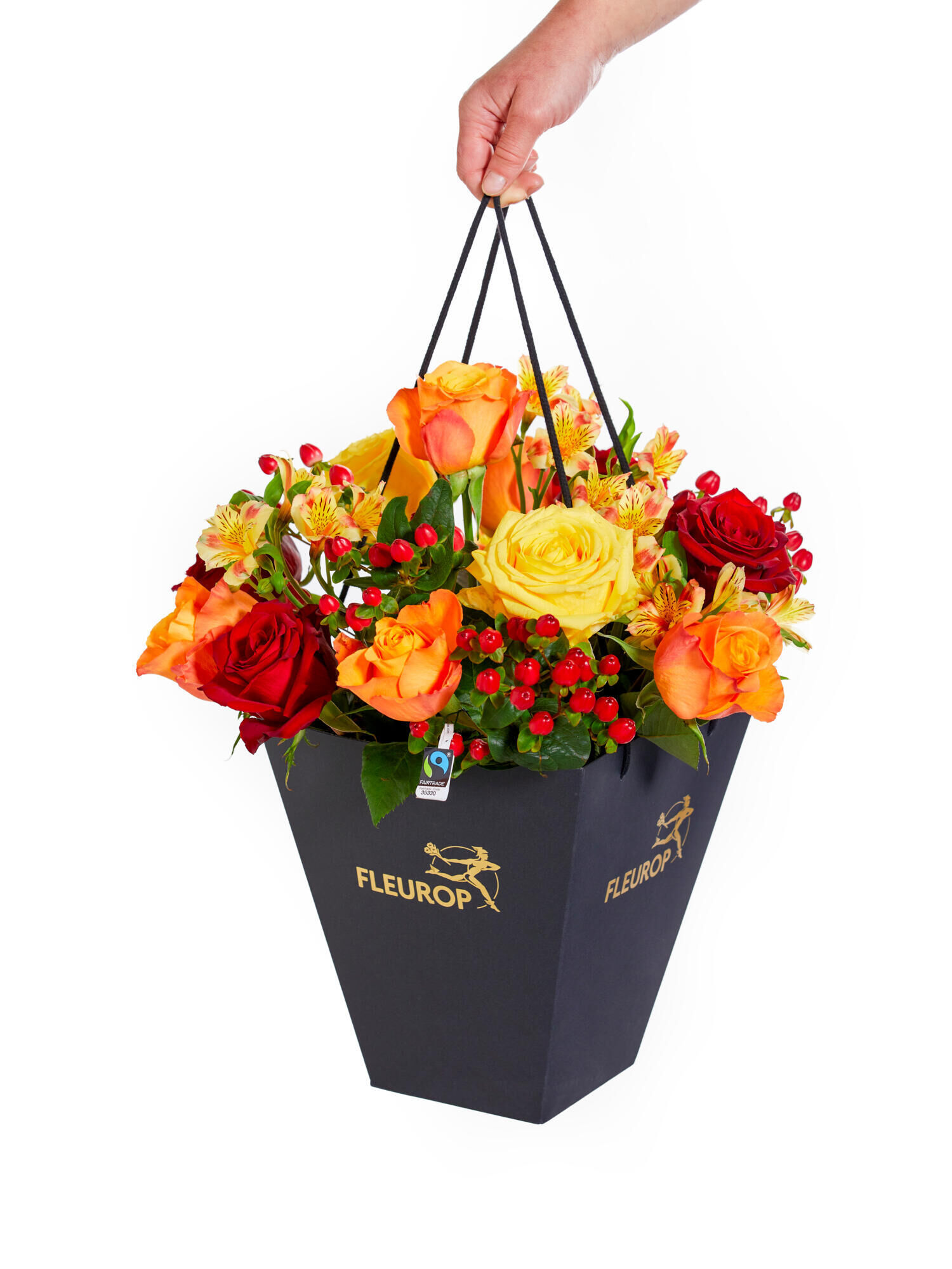 Den Fairtrade-zertifizierten Rosenstrauß „Feurige Liebe“ verschicken mit dem Fleurop Blumenversand. ➤ Jetzt online bestellen und Liebe verschenken!