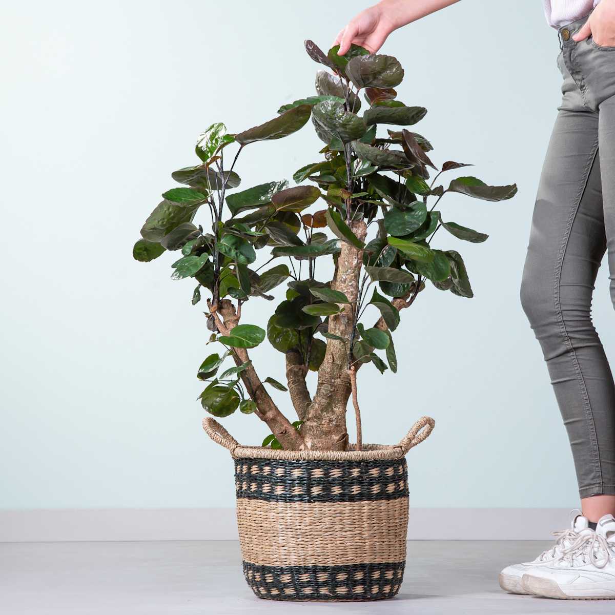 Polyscias scutellaria klingt jetzt irgendwie nicht so sympathisch, das können wir verstehen. Du darfst sie auch Fiederaralie ‚Fabian‘ nennen und du wirst sehen, sie wird ganz schnell dein Freund. Die Fiederaralie ist nämlich eine echte Kumpel-Pflanze, die dich (fast) überall hinbegleitet, zum Beispiel auch in dein Büro. Dafür putzt sie sich auch richtig heraus und lässt ihre runden, dunkelgrünen Blätter glänzen. Allerdings braucht sie schon etwas mehr Platz, mit ihrem aufrechten, verzweigten Wuchs kann sie schon mal 1,3 m groß und 60 cm breit werden. Aber für Freunde ist ja immer ein Platz frei, oder? Die Fiederaralie ‚Fabian‘ muss regelmäßig gegossen werden. Wenn du darauf achtest, dass die Erde immer leicht feucht ist, belohnt sie dich mit kräftigem Wuchs. Am besten kann sie das an einem halbschattigen Standort.