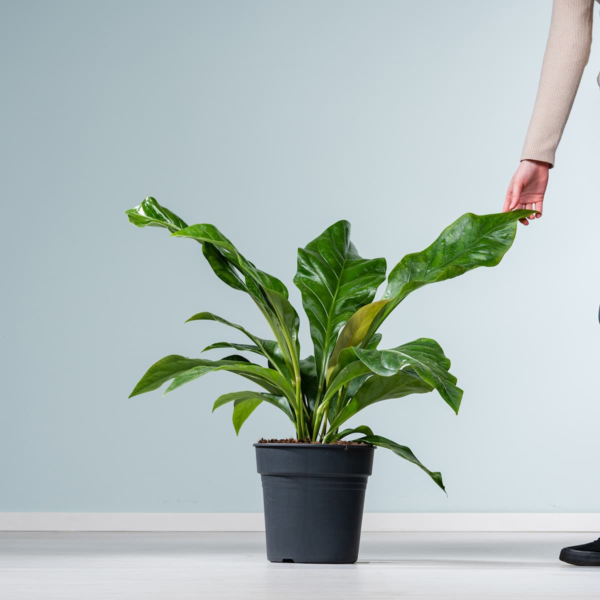 Flamingos haben ja eigentlich nichts mit Dschungel zu tun, doch dieses Exemplar macht da eine Ausnahme. Die Flamingoblume ‚Jungle Bush‘ lässt die Herzen durch üppige, große Blätter höherschlagen, als durch bunte Blüten. Damit ist sie ein einzigartiger Vertreter der Art Anthurium elipticum, der übrigens locker 1 m Groß und 80 cm breit werden kann. Falls du also noch einen Platz in deinem Wohnzimmer-Dschungel hast… Sonst bezieht er auch gerne Stellung im Büro, oder – da kommt der Flamingo durch – im Badezimmer.Die Flamingoblume ‚Jungle Bush‘ muss regelmäßig gegossen werden. Wenn du darauf achtest, dass die Erde immer leicht feucht ist, belohnt sie dich mit kräftigem Wuchs. Am besten kann sie das an einem sonnigen bis halbschattigen Standort.