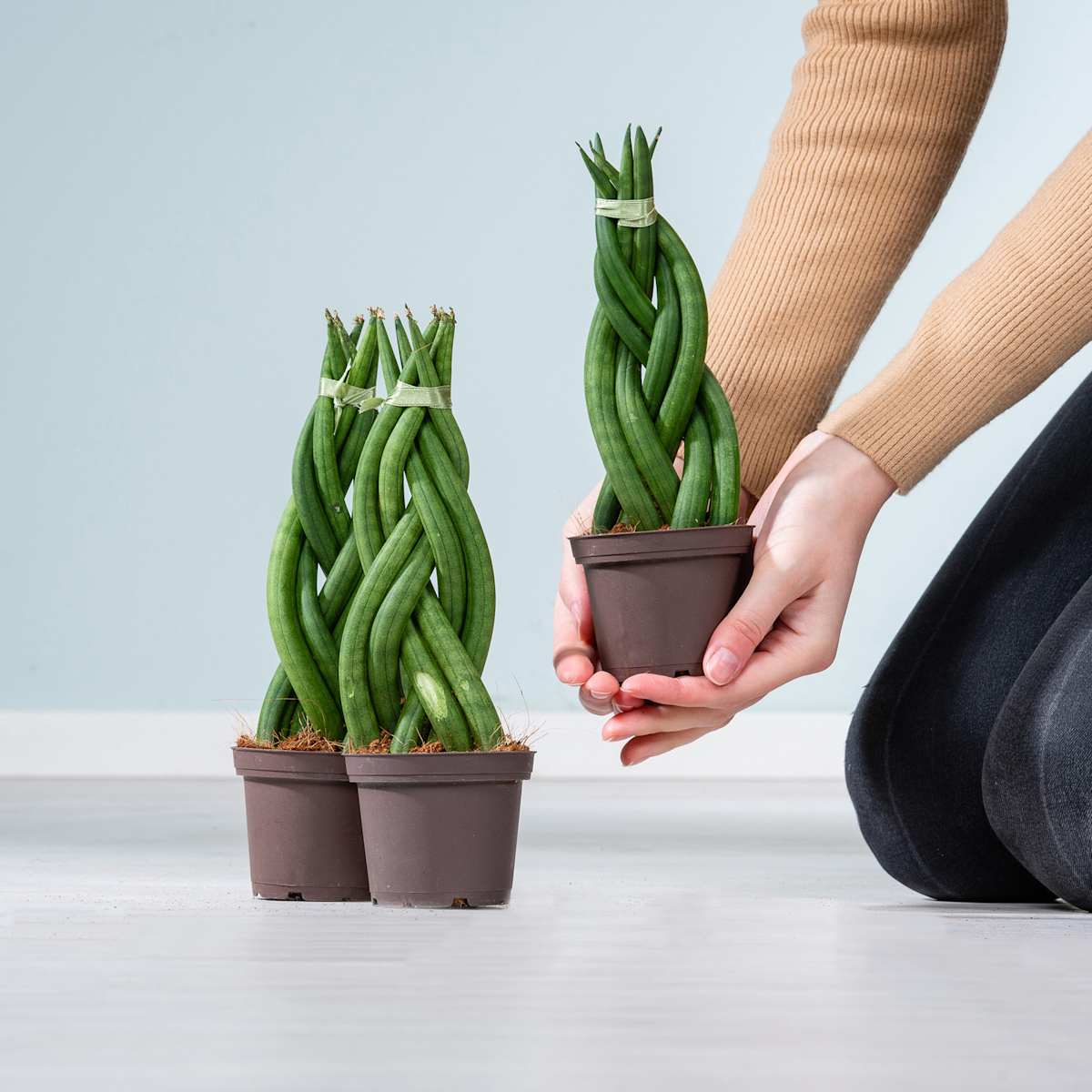 Der Bogenhanf, auch bekannt als Sansevieria, ist jetzt nicht gerade bekannt für eine üppige Haarpracht. Dennoch findet er geflochtene Zöpfe total stylisch und da die Perücke für Zimmerpflanzen ja noch nicht erfunden wurde, schlingt er einfach seine langen, dunkelgrünen Blätter zu einem dicken Zopf zusammen. Etwa 1 m höhe und 40 cm Breite kann er so erreichen. Und mal ehrlich, das ist doch echt perfektes Styling, oder? Hält auch ohne Haarspray, der Bogenhanf ‚Braid‘ muss nur regelmäßig gegossen werden. Wenn du darauf achtest, dass die Erde immer leicht feucht ist, belohnt er dich mit kräftigem Wuchs. Am besten kann er das an einem hellen Standort. Die pralle Sonne mag er nicht so gerne.
