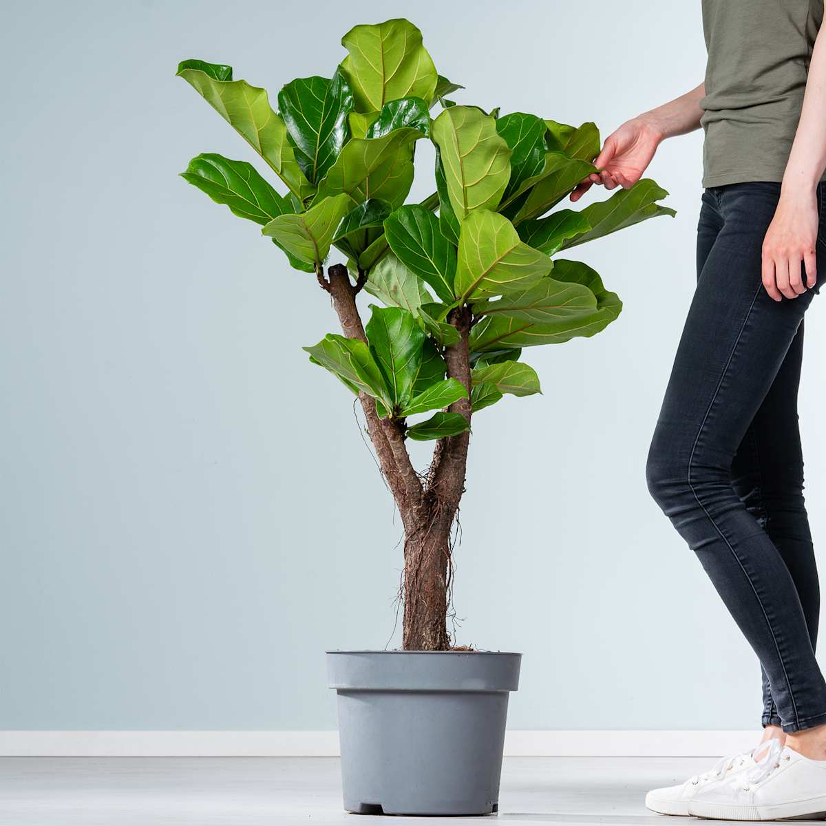 Die Geigenfeige ‚Lyrata‘ ist eng mit den Ficuspflanzen verwandt und hat ihren Namen nicht, weil sie besonders musikalisch wäre, sondern weil ihre dicken Blätter an ein Streichinstrument erinnern. Daran sehen wir mal wieder, wie kreativ Botaniker werden können, wenn es um die Namensgebung der Pflanzen geht. Jedenfalls ist die Geigenfeige ‚Lyrata‘ eine wunderschöne und recht genügsame Zierpflanze, kann in freier Wildbahn jedoch auch riesengroß werden. Auf Hawaii und in Afrika zum Beispiel, wo die Geigenfeige beheimatet ist, wird sie gern mal so groß wie ein Haus. Die Geigenfeige ‚Lyrata‘ muss regelmäßig gegossen werden. Wenn du darauf achtest, dass die Erde immer leicht feucht ist, belohnt sie dich mit kräftigem Wuchs. Am besten kann sie das an einem hellen Standort. Die pralle Sonne mag sie nicht so gerne und auch Zugluft findet sie nicht schön.