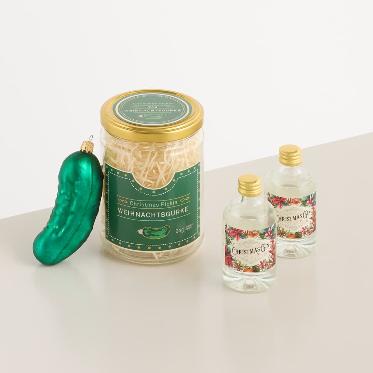 Advent, Advent, ein Lichtlein brennt… Weihnachten steht vor der Tür, höchste Zeit, an die Geschenke für deine Lieben zu denken. Doch was tun, wenn dein Herzensmensch nicht auf Schokolade und süßes Konfekt steht? Wir haben genau das Richtige für dich! Unser Geschenkset Ginlicher Advent ist etwas für absolute Genießer. Es enthält zwei Flaschen Gin von Wajos mit der Aufschrift Christmas Gin sowie eine Weihnachtsgurke. Der schmackhafte Weihnachtsgin bringt garantiert Festtagsgefühle in jedes Glas. Natürlich dürfen auch hier die würzigen Töne nicht fehlen. Gin hat seinen Ursprung übrigens im Holland des 17. Jahrhunderts und wurde dort Genever genannt. Verwendet wurde er damals als wohltuender Trank in der Medizin. Die Weihnachtsgurke ist ein Baumschmuck in Form einer grünen Gurke, der in den Zweigen des Weihnachtsbaums versteckt wird. Traditionell heißt es, dass die Glückliche, die die Gurke zuerst findet, beispielweise ein zusätzliches Geschenk erhält oder als Erstes die Geschenke öffnen darf. Frohe Weihnachten!