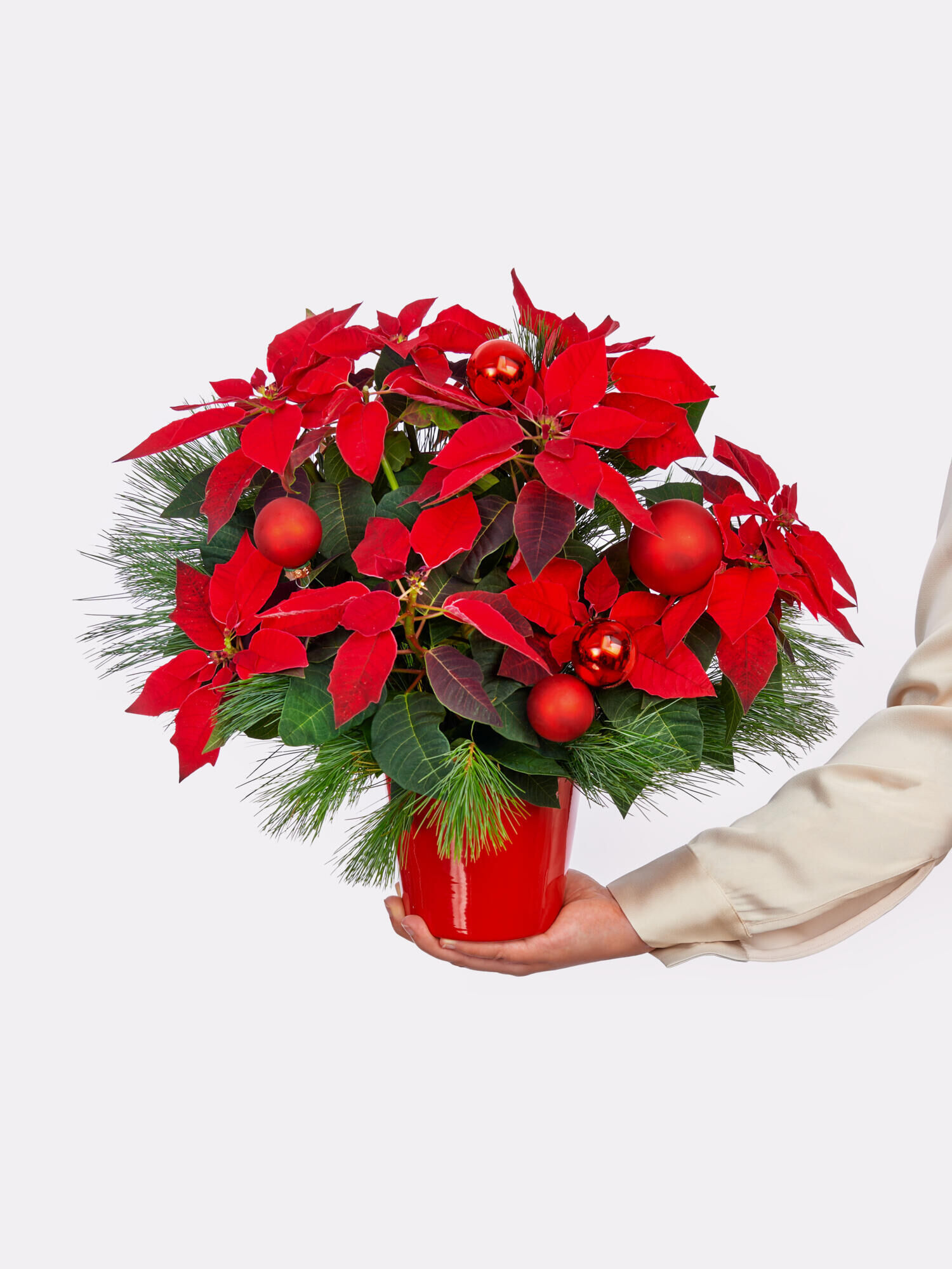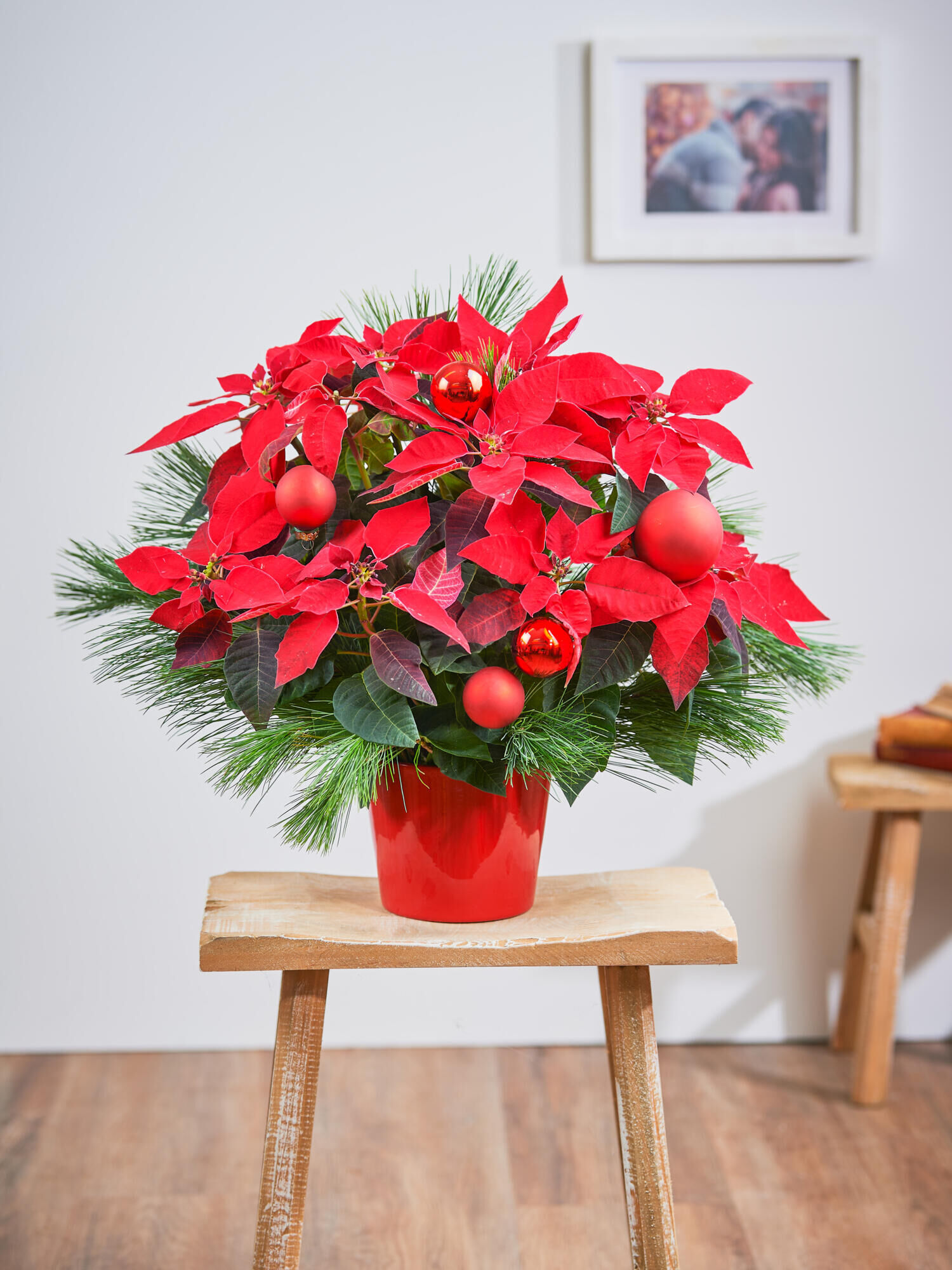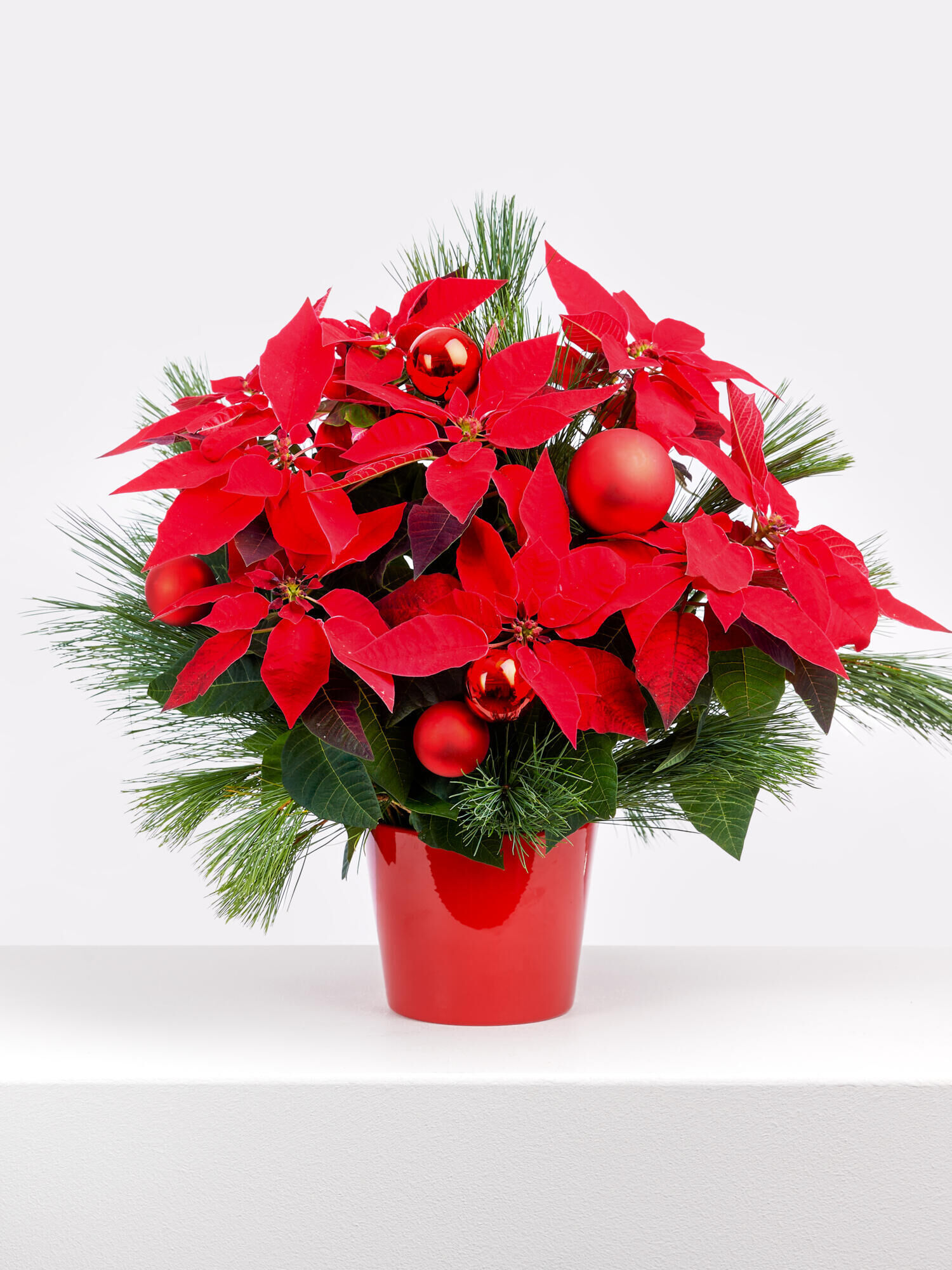 Den roten Weihnachtsstern „Glücksstern“ im Übertopf verschicken mit dem Fleurop Blumenversand. ➤ Jetzt online bestellen!