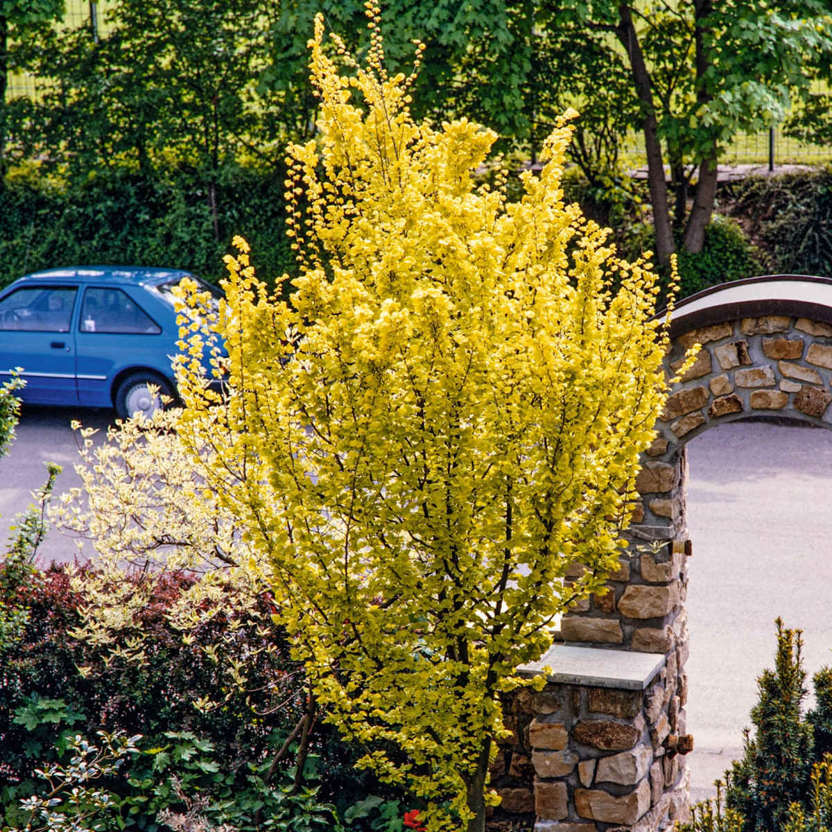 Na klar, eine gewöhnliche Ulme kommt dir nicht in den Garten, es muss ja schon was Besonderes sein! Ok, das sollte ein Scherz sein. Aber die Goldulme ‚Wredei‘ ist wirklich sehr verlockend. Schon ihr schlanker Wuchs, der sie etwa 7 m hoch und 4 m breit werden lässt, ist sehr auffällig. Dazu trägt Ulmus carpinifolia wredei, wie sie sich botanisch nennt, eiförmige, gedrehte Blätter in leuchtendem goldgrün. Und hey! Warum einfach, wenn es auch besonders geht – also gönn dir! Die Goldulme ‚Wredei‘ macht dir nicht viel Arbeit. Immer genügend Wasser, dazu ein sonniger bis halbschattiger Standort, mehr braucht sie nicht um munter zu wachsen.