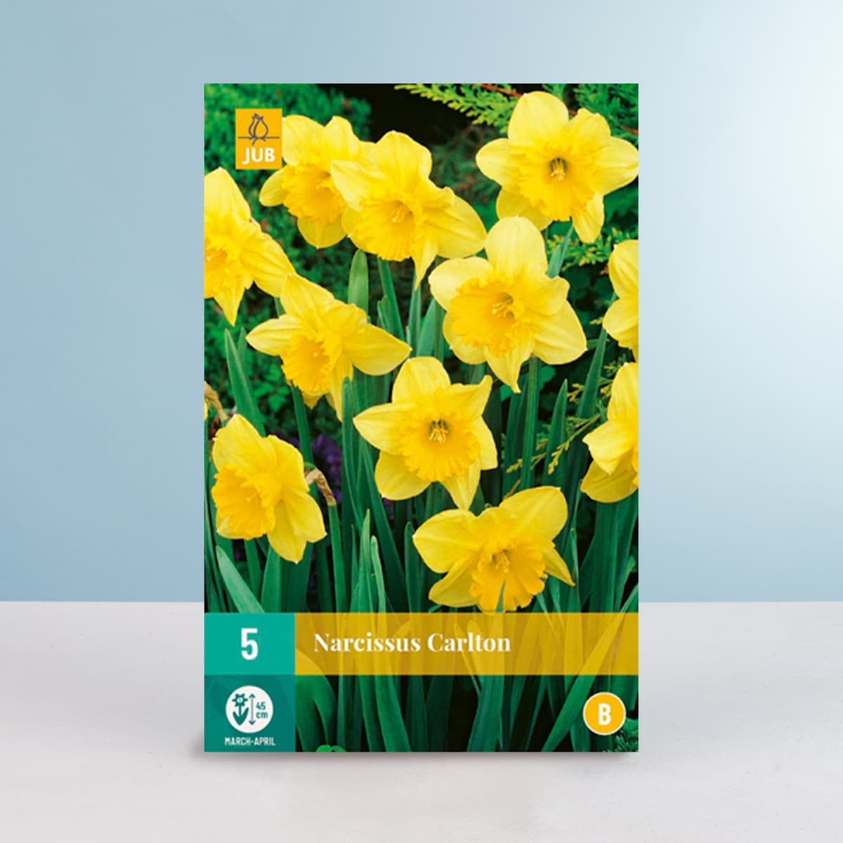 Narzissen gehören zu den Klassikern der Zwiebelblumen und sollten in keinem Garten fehlen! Daher lass dir die Großkronige Narzisse ‚Carlton‘ nicht entgehen. Wenn sie zwischen März und April ihre großen, leuchtend gelben Blüten öffnet, scheint sie geradezu mit der Frühlingssonne um die Wette zu strahlen. Diese Vertreterin der Art Narcissus Hybrid wird dabei etwa 40 cm hoch. Du kannst die 5 Zwiebeln, die du erhältst, in deinen Garten pflanzen, aber auch in Kübel auf Balkon oder Terrasse. Hauptsache die Erde ist durchlässig und der Standort windgeschützt und sonnig.