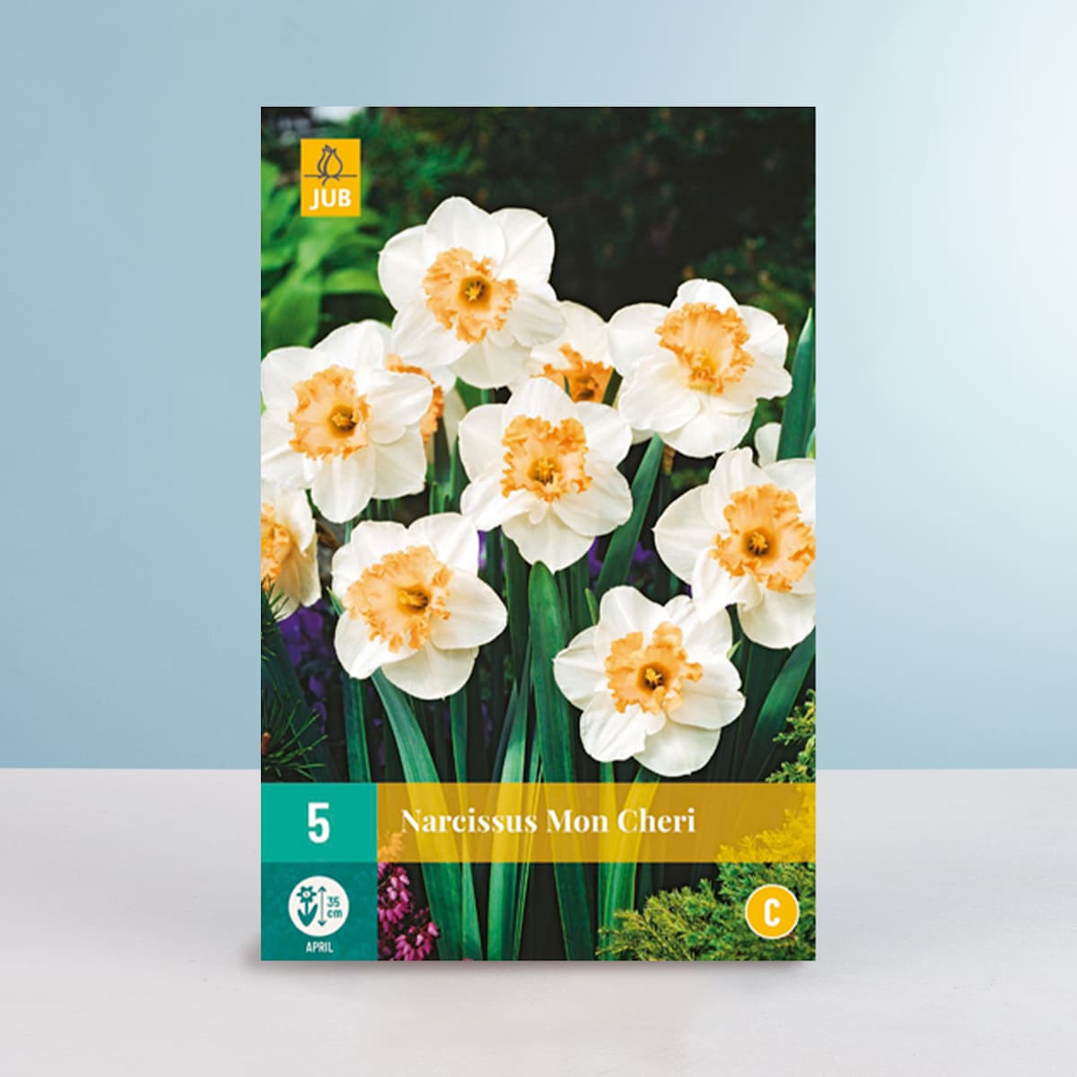Freunde sind eine Bereicherung im Leben. Und im Garten! Deshalb solltest du dir die Großkronige Narzisse ‚Mon Cheri‘ nicht entgehen lassen. Jeden April wird sie dich aufs Neue mit ihren großen Blüten begeistern. Diese sind wunderschön weiß, mit einer pastell-orangefarbenen Krone und duften leicht. Diese Vertreterin der Art Narcissus Hybrid wird dabei etwa 40 cm hoch. Du kannst die 5 Zwiebeln, die du erhältst, in deine Beete pflanzen, aber auch in Kübel auf Balkon oder Terrasse. Hauptsache die Erde ist durchlässig und der Standort windgeschützt und sonnig. Übrigens geben sie auch hübsche Schnittblumen ab, falls du deinen Lieblingsmenschen mal eine Freude machen möchtest.