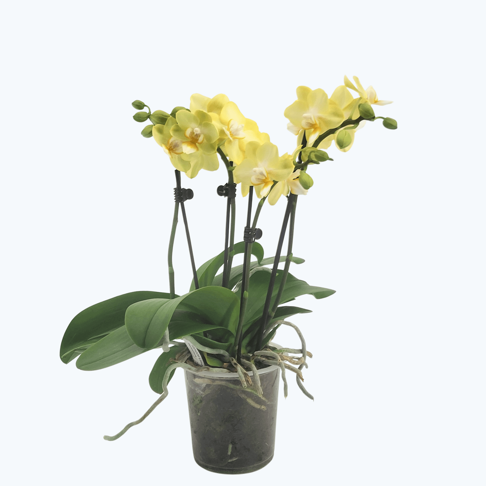 Die Two of Us Limone ist eine exklusive Neuheit in unserem Sortiment. Two of Us Limone ist eine elegante Orchidee mit zart hellgelben Blüten, die jedem Raum eine frische und freundliche Atmosphäre verleihen. Ihre langlebigen, strahlenden Blüten und die pflegeleichte Natur machen sie zur perfekten Wahl für Zuhause oder stilvolles Geschenk. Eine zeitlose Schönheit für jedes Interieur. Im Überblick: 4 Blütenrispen Topfgröße: 12 cm Größe: ca. 40 – 45 cm