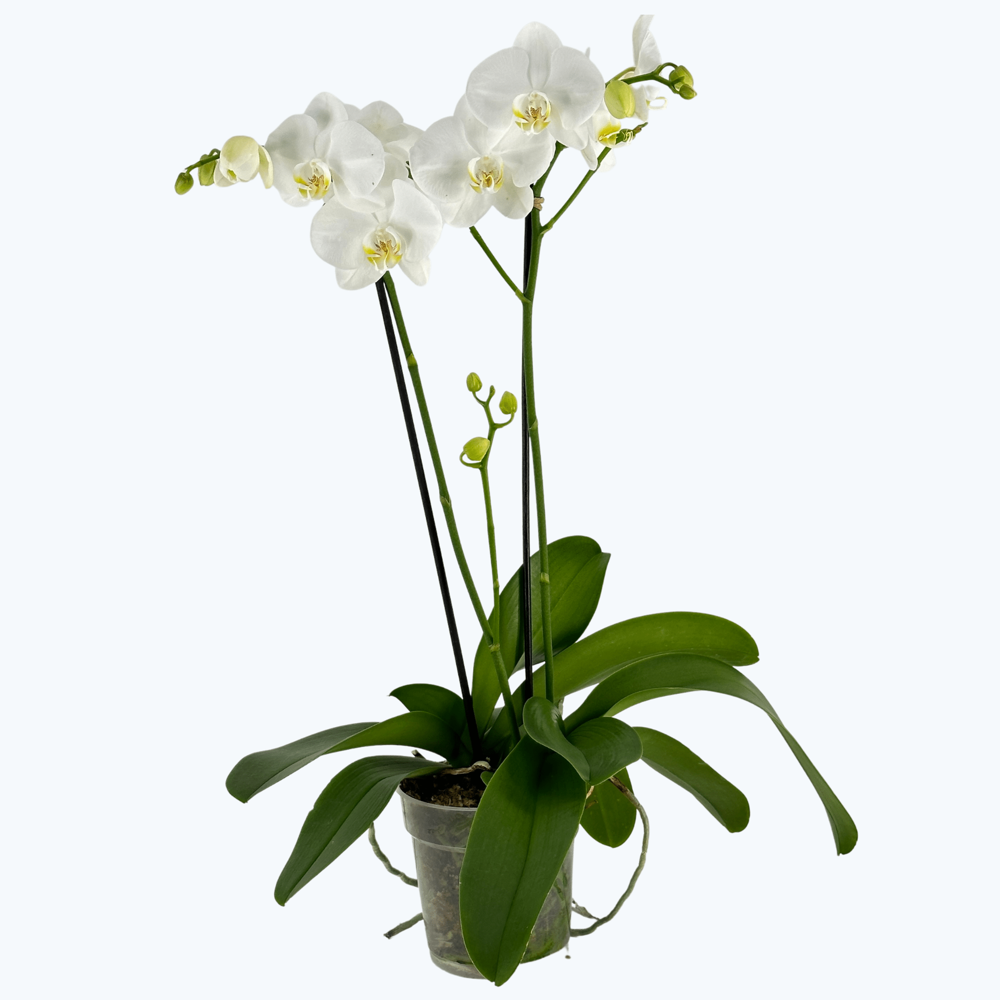 Diese Orchidee mit zwei üppigen Blütenrispen ist nicht umsonst ein absoluter Bestseller: Ihre großen, cremeweißen Blüten mit zarter gelber Lippe strahlen pure Eleganz aus und verwandeln jeden Raum in ein stilvolles Ambiente. Dank ihrer besonders wuchsfreudigen Natur und der außergewöhnlich langen Blühdauer ist sie ein wahres Highlight für alle Pflanzenliebhaber – und bleibt dir lange erhalten. Eine Orchidee dieser Premium-Qualität findest du sonst nur im Gartencenter oder bei ausgewählten Floristen – hier bekommst du sie direkt nach Hause geliefert! Schon gewusst? Bei Two of Us-Orchideen pflanzen wir zwei Jungpflanzen in einem Topf an, sodass du eigentlich sogar zwei Pflanzen erhältst. Jede von ihnen hatte viel Zeit, in unserer Gärtnerei in Ruhe gesund aufzuwachsen.