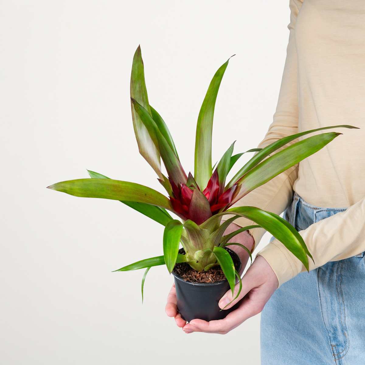 Die Guzmanie ‚Sky‘ lässt dich zum Himmel hoch jauchzen?! Ihre rosettenartig angeordneten, grünlich-roten Blätter und die einzigartige, dunkelrote Blüte in der Mitte sind echt ein erfreulicher Anblick, der Lebensfreude verspricht. Guzmania Hybrid, wie sie sich botanisch nennt, kann bis zu 1 m hoch und 80 cm breit werden. Sie muss nur ausreichend gegossen werden. Wenn du darauf achtest, dass die Erde immer feucht ist, belohnt sie dich mit kräftigem Wuchs und viel guter Laune. Am besten kann sie das an einem sonnigen bis halbschattigen Standort.