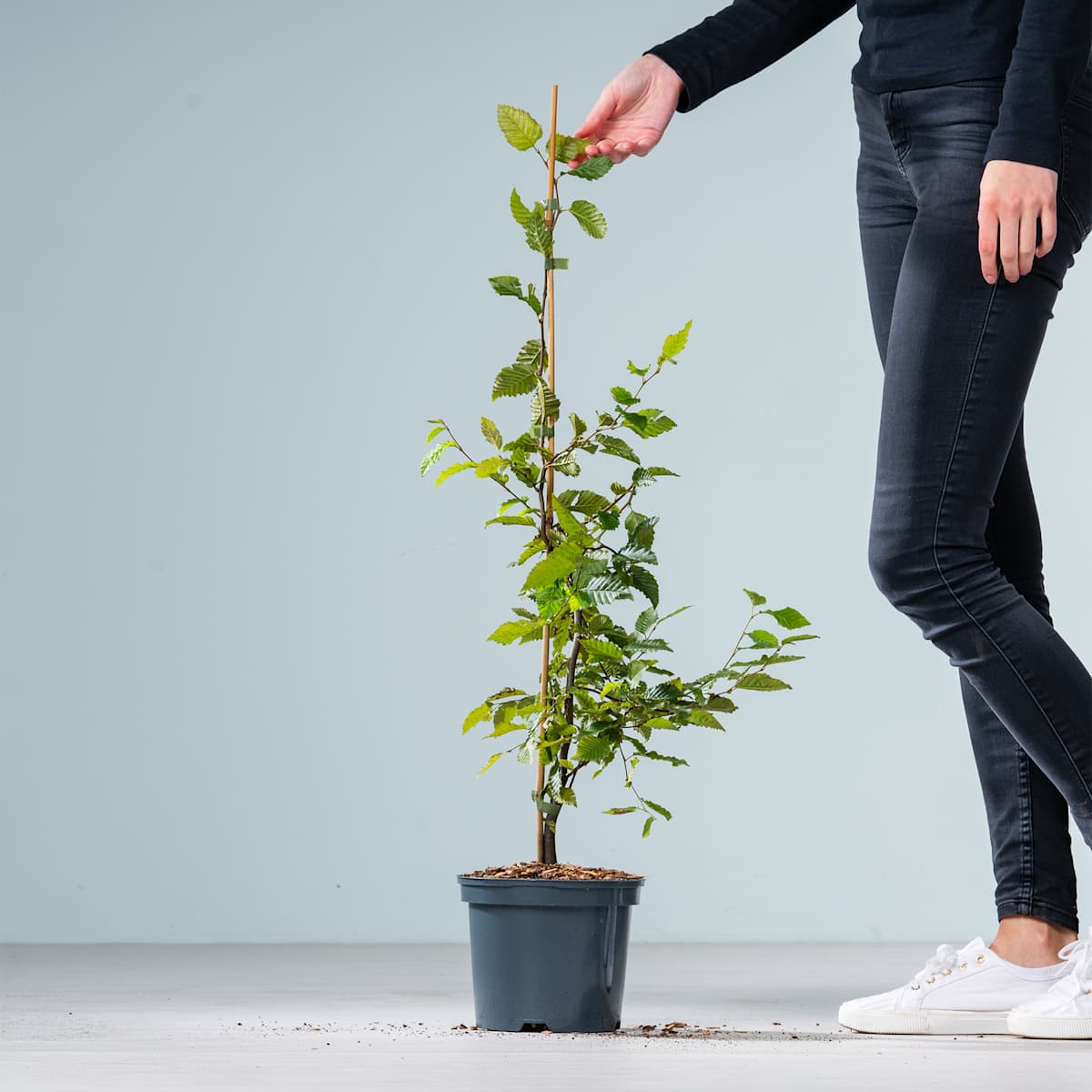 Alte, freistehende Hainbuchen sind ein echt beeindruckender Anblick. Kaum zu glauben, dass dieselbe Art Carpinus betulus sich auch so hervorragend für Hecken eignet. Gut, diese können auch beeindruckend sein mit immerhin bis zu 8 m Höhe bei 4 m Breite. Aber du kannst sie auch nach belieben zurechtschneiden. Jedenfalls bilden sie mit ihrem dichten, frischgrünen Laub blickdichte Hecken. Das Herbstlaub ist schön orangegelb und verbleibt noch den Winter hindurch an der Pflanze. Sie lässt also nichts durchblicken.Die Hainbuche macht dir nicht viel Arbeit. Ob nun volle Sonne, oder lichter Schatten, das ist ihr egal. Hauptsache sie bekommt ausreichend Wasser, mehr braucht sie nicht um munter zu wachsen.