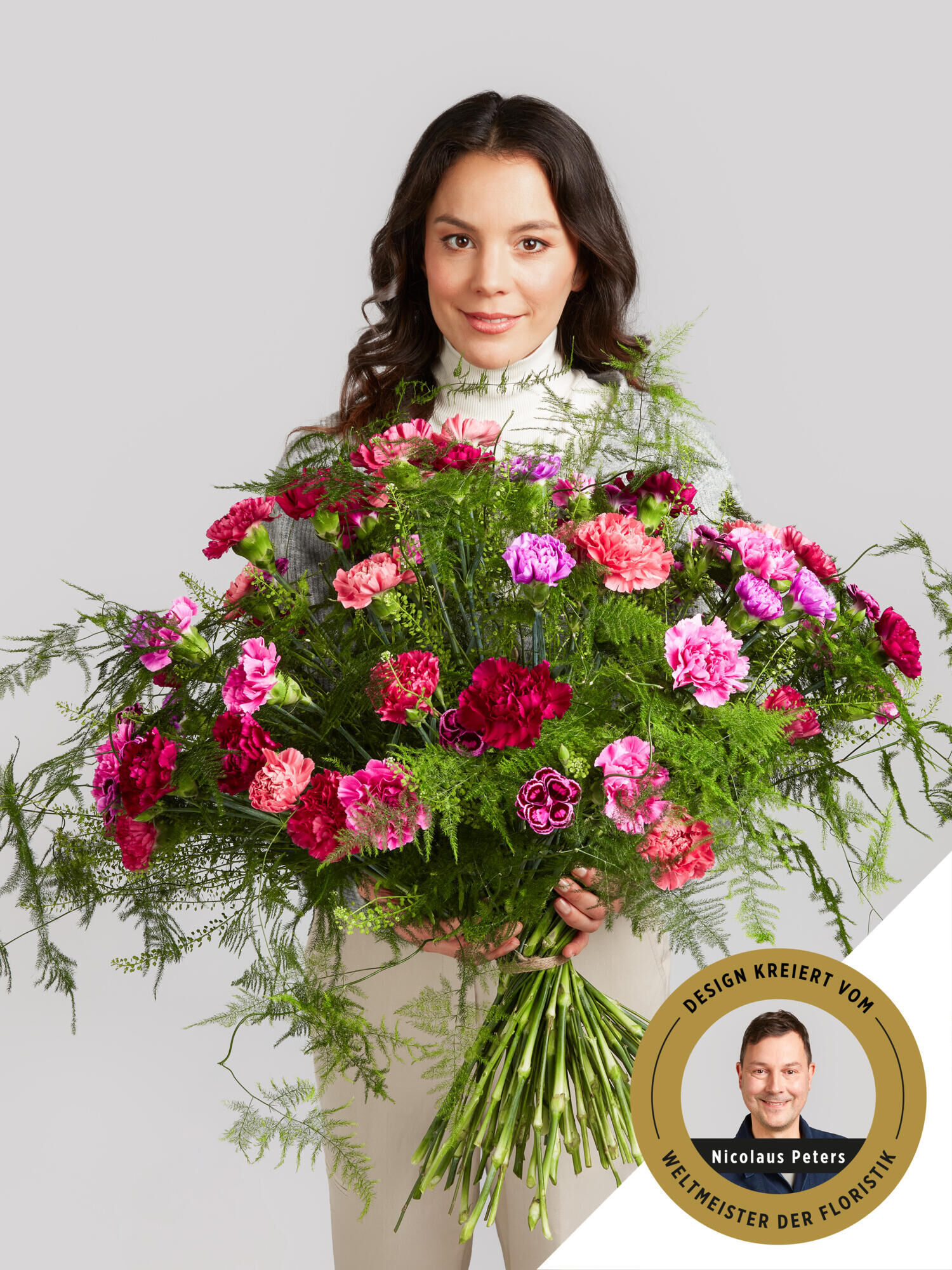 Den luxuriösen Nelkenstrauß „Harmony in Pink“ verschicken mit dem Fleurop Blumenversand. ➤ Jetzt online bestellen und die Liebe verschenken!