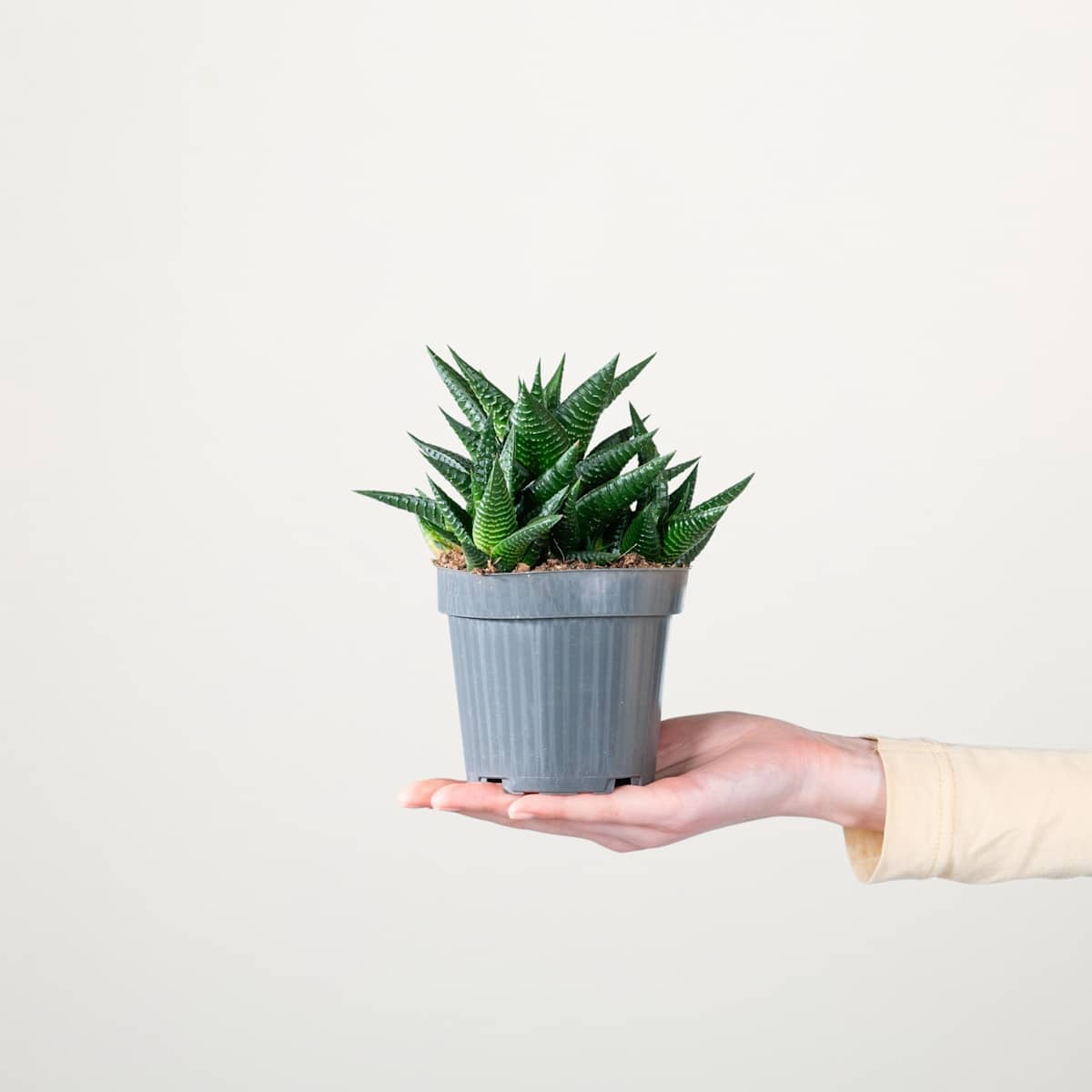 Auch wenn du dich nicht als Sukkulenten-Fan bezeichnen würdest, solltest du dir die Haworthia ‚Limifolia‘ nicht entgehen lassen. Klar, sie ist wie fast alle Sukkulenten, total pflegeleicht. Ein sonniger Standort und ab und an mal etwas Wasser – das reicht ihr. Und mit etwa 25 cm Wuchshöhe und Breite passt sie auch fast überall mit hin. Doch so richtig zum Must-have wird sie durch ihre dickfleischigen Blätter. Ihr Name Fächer-Haworthie ist vielleicht etwas irreführend, aber schau sie dir einmal genauer an. Erkennst du die Spiralform, in der sie ihre Blätter auffächert? Und ja, anfassen erlaubt, denn die gerippte Struktur der dunkelgrünen Blätter ist ebenso einzigartig.