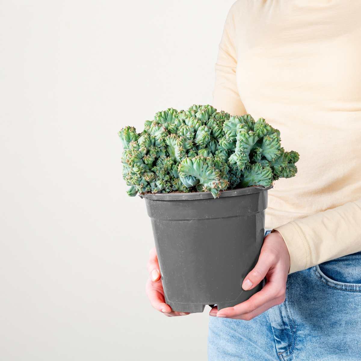 Dieser Kaktus ist ein Künstler unter den Kakteen, genauer gesagt ist er ein Kaktus-Kunstwerk. Daher solltest du dir seinen Name Myrtillocactus geometrizans ‚Cristata‘ unbedingt merken. Ok, du darfst ihn auch Heidelbeerkaktus ‚Cristata‘ nennen. In immer neuen Wellen entwickelt er sich zu einem einzigartigen Exemplar. Bei der blaugrauen Farbe seiner Rinde lässt sich dann auch schon mal vergessen, dass es sich um einen echten Kaktus handelt. Auch wenn es dir nie passieren wird, keine Sorge, wenn du es wirklich mal vergisst und ihn nicht gegossen hast. Der Heidelbeerkaktus ‚Cristata‘ ist auch ein Überlebenskünstler und kommt mit Trockenheit gut zurecht. Damit dein Kaktus-Kunstwerk besonders gut zur Geltung kommt, solltest du einen sonnigen Standort für ihn reservieren.