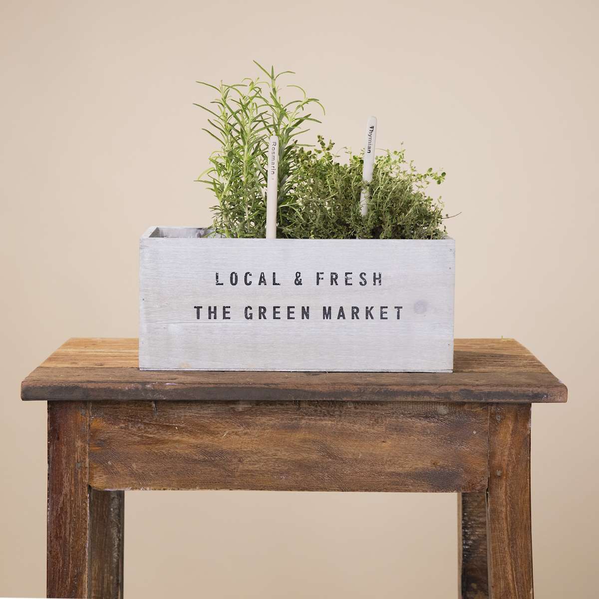 Hast du schon unsere tolle „Holz Box Natur“ entdeckt? Sie hat eine gerade Form und präsentiert sich im angesagten Shabby-Look. Die Front ist mit dem schwarzen Aufdruck „LOCAL & FRESH THE GREEN MARKET“ geschmückt. Der außergewöhnliche Übertopf hat eine Länge von 30 cm. Die Breite liegt bei 16 cm und die Höhe beträgt 12,5 cm. Hier kannst du mehrere Kakteen oder auch Blühpflanzen geschmackvoll arrangieren. An den vier Seiten ist das Holz 0,8 cm stark, die Spanholzplatte am Boden hat eine Stärke von 0,3 cm. Um das Holz vor Feuchtigkeit durch Gießwasser zu schützen, ist der Übertopf innen mit durchsichtiger Folie ausgestattet. Na, hast du schon Pflanzideen?