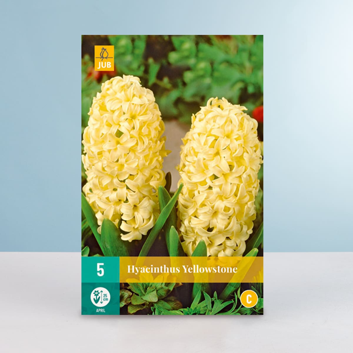 Frühling ist, wenn die Hyazinthe ‚Yellowstone‘ blüht, denn wer sonst kann mit so frühlingsfrischen Blütenfarben aufwarten? Ab April streckt diese etwa 25 cm groß werdende Vertreterin der Art Hyacinthus orientalis, ihre Blütenrispe empor. Ein Traum aus pastellgelben Blüten! Doch sie ist nicht nur optisch ein Frühlings-Vergnügen, die Blüten verströmen einen einzigartigen Duft. Am besten setzt du die fünf Zwiebeln, die du erhältst in durchlässige Erde an einem sonnigen bis halbschattigen Standort. Das kann übrigens auch ein Blumenkübel auf der Terrasse oder ein Balkonkasten sein.
