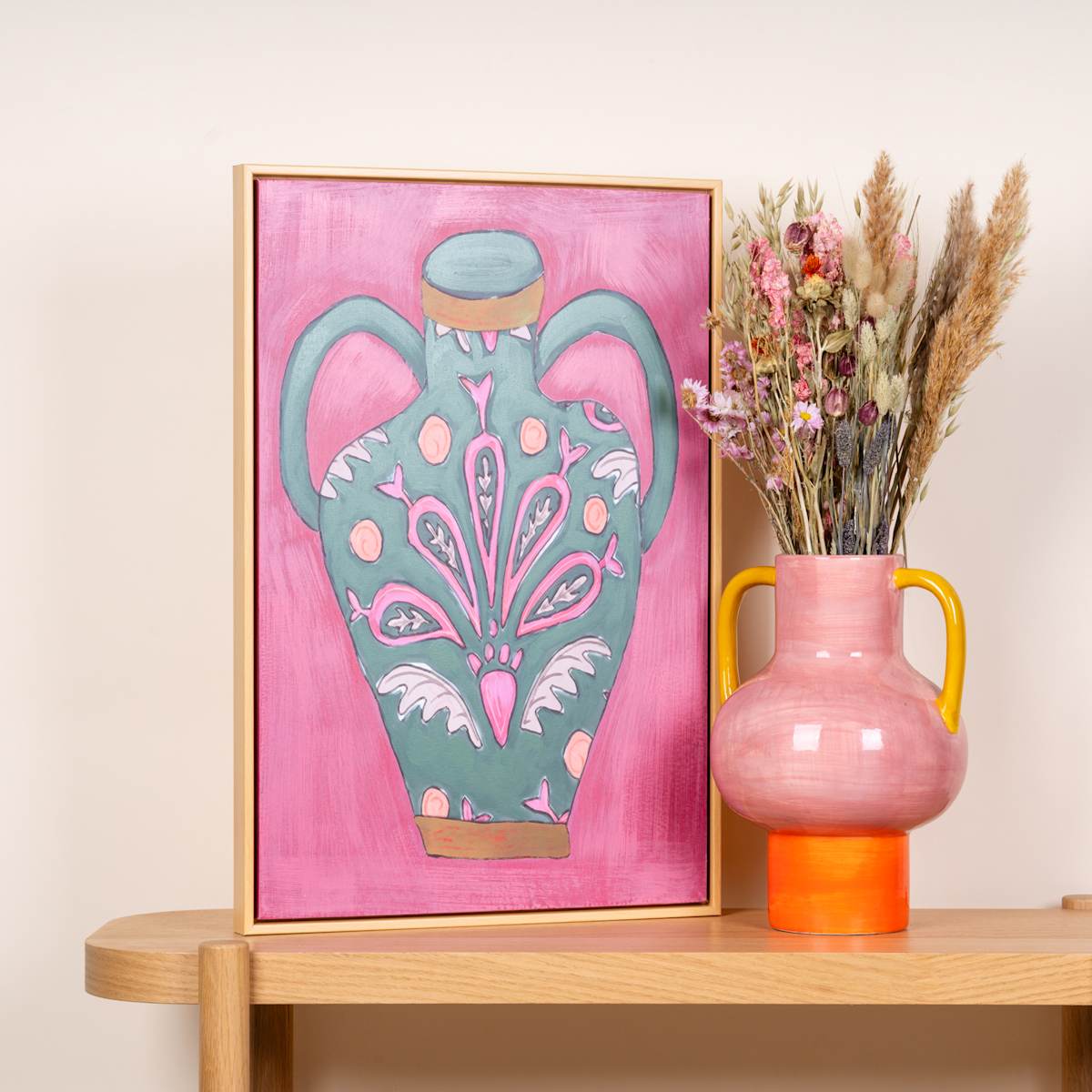 Möchtest du deinen Wohnraum mit einer trendigen Note verschönern? Die Illustration Granada Vase Grün/Weiß ist eine wunderschöne Ergänzung für deine Wanddekoration. Mit einer Größe von 40 cm Länge, 60 cm Breite und einer Tiefe von 3,5 cm ist sie ein beeindruckendes Kunstwerk, das deine Blicke auf sich zieht. Das moderne Design in Weiß und Grün verleiht deinem Raum eine frische und lebendige Atmosphäre. Kannst du dir vorstellen, wie dieses Wandbild dein Zuhause verschönert? Das Besondere an dieser Illustration ist ihre Vielseitigkeit. Sie kann als Wandbild verwendet werden und ist somit eine einfache Möglichkeit, deinen Raum zu gestalten und zu beleben. Warum also nicht deine Wände mit diesem angesagten Design schmücken und deinem Zuhause eine persönliche Note verleihen? Hol dir jetzt die Illustration Granada Vase und erlebe, wie sie dein Wohnambiente aufwertet!
