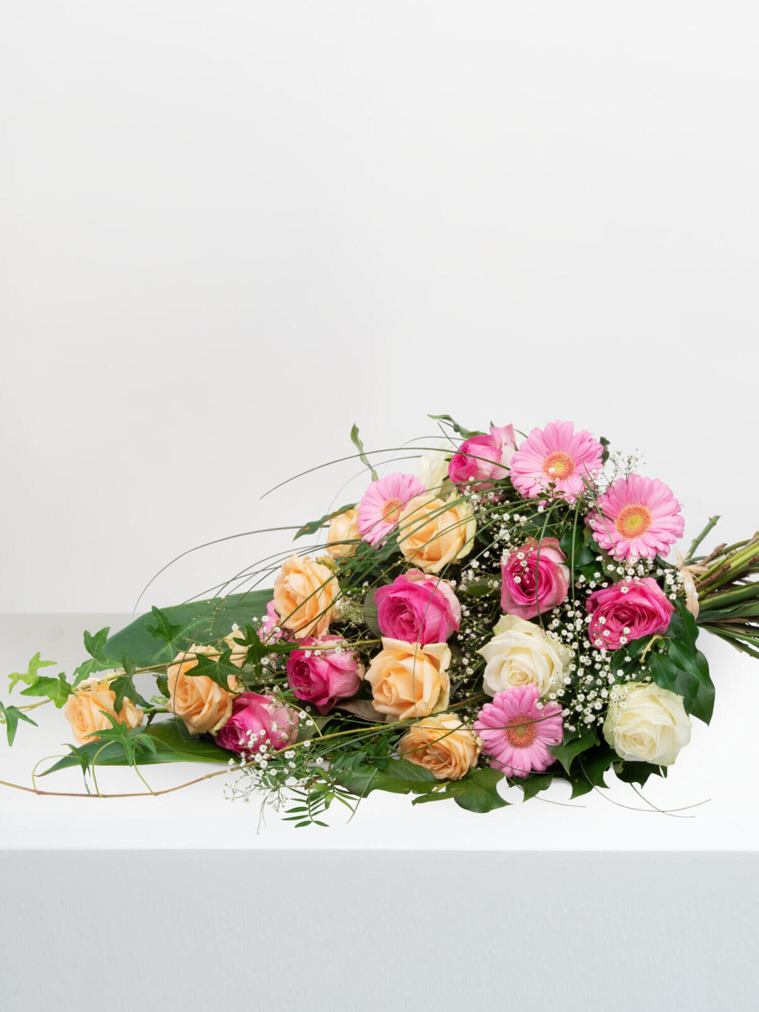 Trauerstrauß in Rosa-Apricot von Fleurop Blumenversand zum Nachhause-Bestellen. ✔ Blumenversand mit Frische-Garantie ➤ Jetzt kaufen!