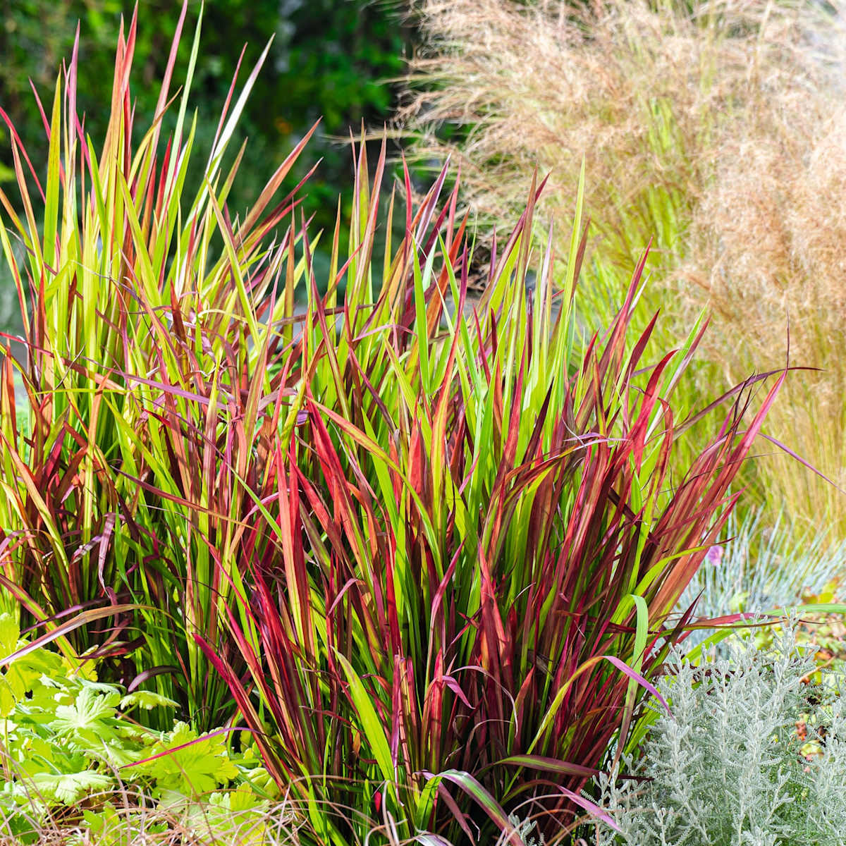 Botanisch hört es auf den Namen Imperata cylindrica. Das klingt imposant! Und Japanisches Blutgras ‚Red Baron‘ könnte auch aus einem Pflanzen-Horror-Film sein? Dann sei beruhigt, dieses Gras ist total harmlos, es sieht nur einfach klasse aus. Im Austrieb noch grün, färben sich die langen Blätter schnell in ein blutrot – na ja, irgendwoher muss der Name ja kommen. Mit seinem lockeren, aufrechten Wuchs ist es eine lebhafte Bereicherung in Blumenbeeten und Balkonkästen, es wird etwa 40 cm Hoch und breit. Das Japanisches Blutgras ‚Red Baron‘ hat schon seine Ansprüche an seinen Standort, windgeschützt und vor allem sonnig sollte er sein. Dazu immer ausreichend Wasser. Aber dann steht dem blutroten Schauspiel auch nichts mehr im Wege. Übrigens kannst du die trockenen Blätter den Winter über stehen lassen, als Winterschutz so zu sagen, und erst im Frühling zurückschneiden.