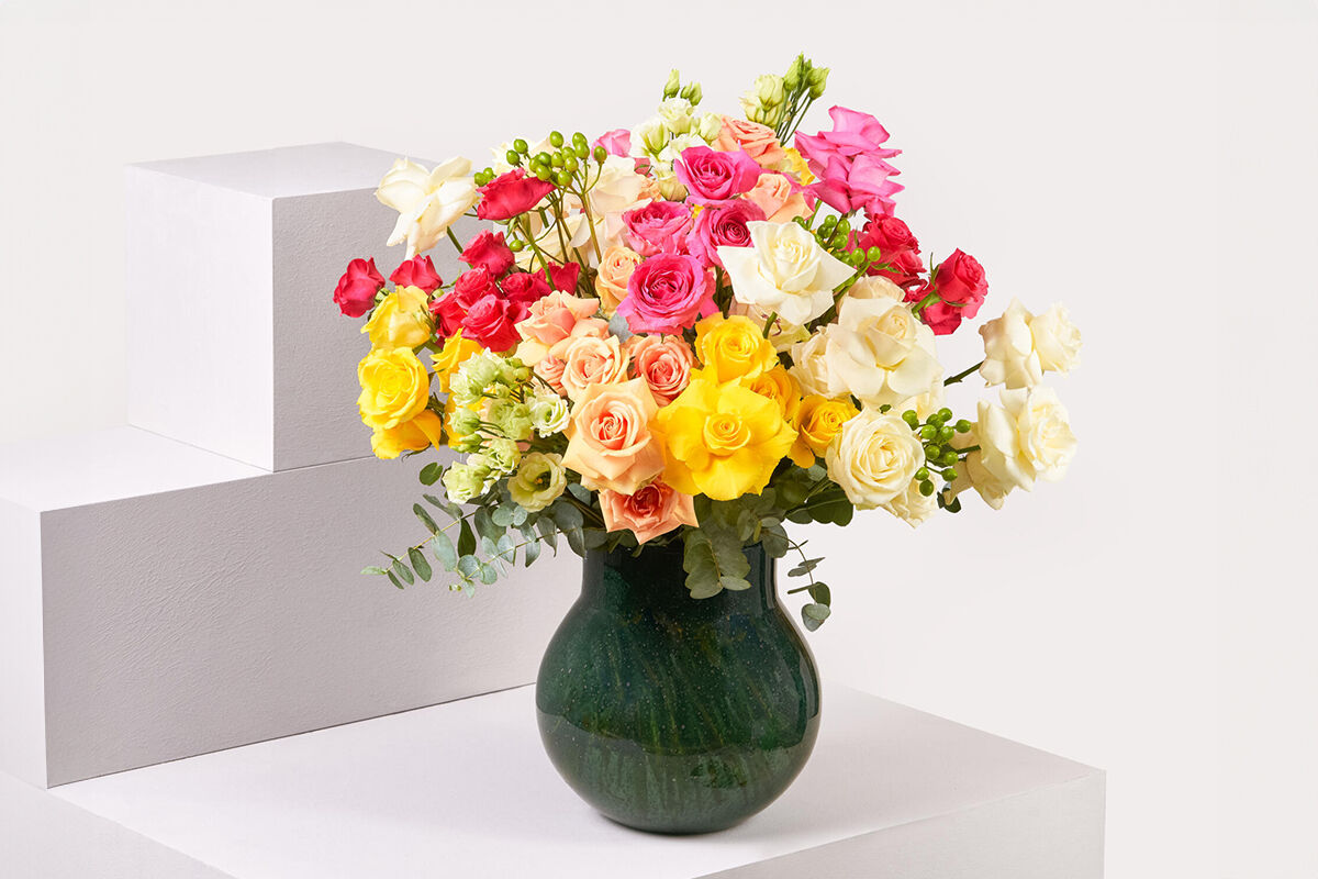 Den luxuriösen Rosenstrauß „Joie de Vivre“ verschicken mit dem Fleurop Blumenversand. ➤ Jetzt online bestellen und die Liebe verschenken!