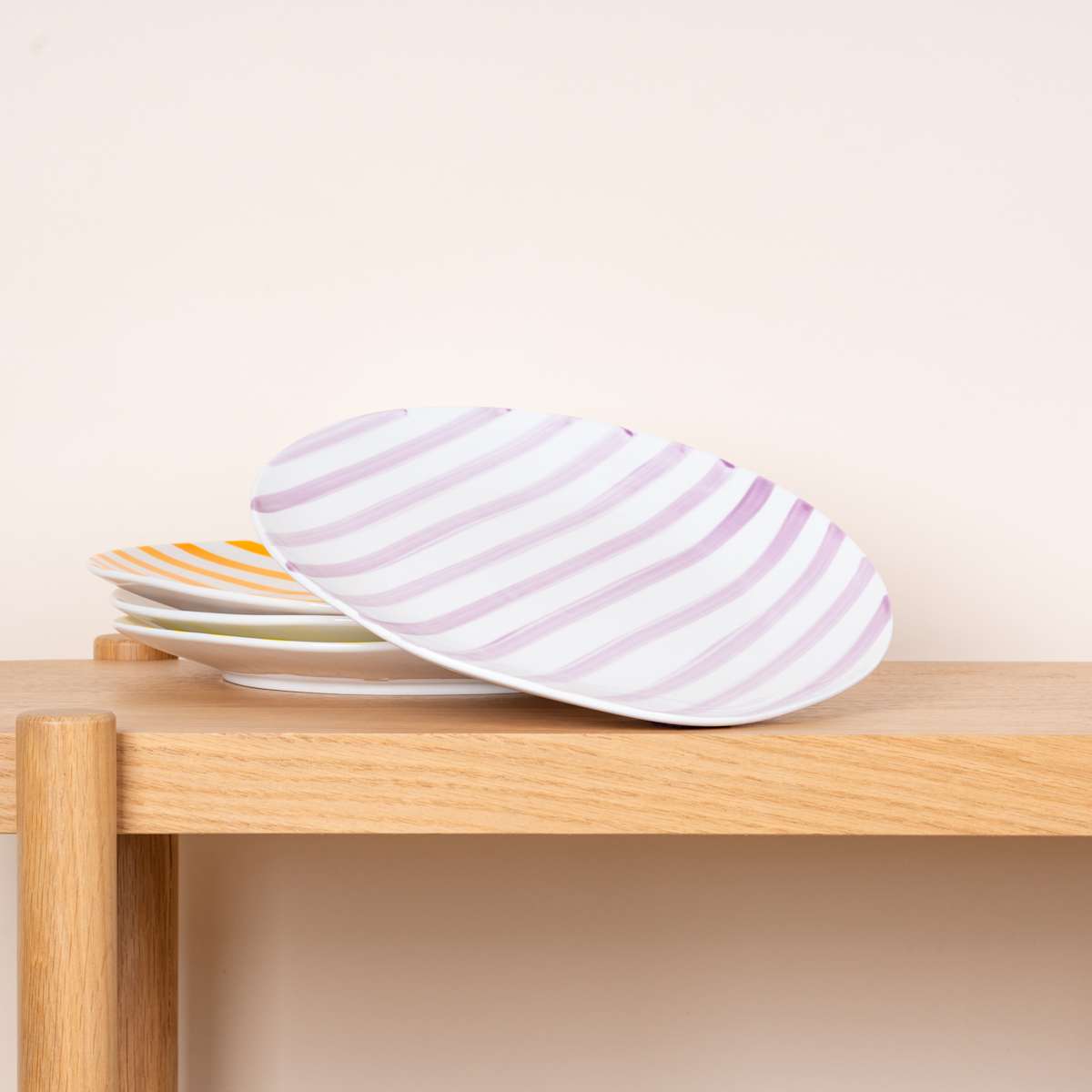 Möchtest du deinen Esstisch mit einem Hauch von Eleganz und Modernität verschönern? Unser Keramik Essteller in gestreiftem Violett ist die perfekte Wahl! Mit einer robusten Höhe von 3 cm und einem Durchmesser von 26,5 cm ist er nicht nur großzügig dimensioniert, sondern auch äußerst stabil. Hergestellt aus hochwertiger Keramik, besticht dieser Teller durch sein trendiges Streifen-Design in lebendigem Violett. Möchtest du deine Mahlzeiten stilvoll servieren? Ob für ein festliches Dinner, ein gemütliches Familienessen oder ein entspanntes Picknick im Freien – dieser Teller macht immer eine gute Figur. Kombiniere ihn mit anderen Geschirrstücken oder lasse ihn solo wirken, um deinen Esstisch zu einem Blickfang zu machen. Hol dir diesen einzigartigen Essteller und genieße deine Mahlzeiten in stilvollem Ambiente!