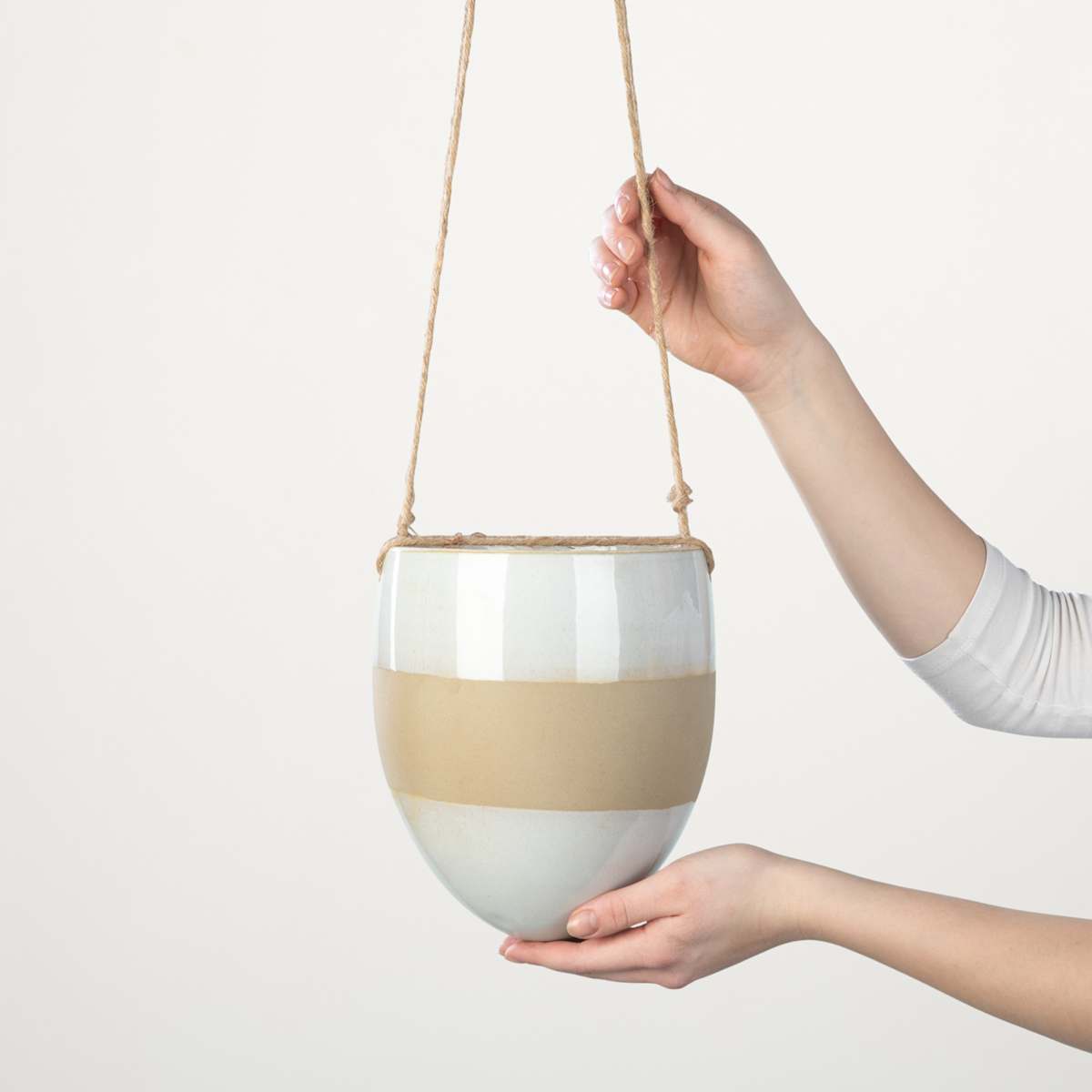 Wie frisch aus dem Ei gepellt sehen deine Pflanzenlieblinge in diesem eleganten Keramikübertopf zum Aufhängen aus. Und da reden wir nicht von gewöhnlichen Hühnereiern – dieser glänzende Übertopf aus Keramik ist für 14er Pflanztöpfe gemacht und damit groß wie ein Straußenei! Und nein, mit dieser Form von Deko brauchst du wirklich nicht den Kopf in den Sand zu stecken. Glänzend in Creme und Natur gehalten ist dieser Keramikübertopf wirklich was für f-EI-ne Gesellschaft. Sogar wenn Veganer anwesend sind.