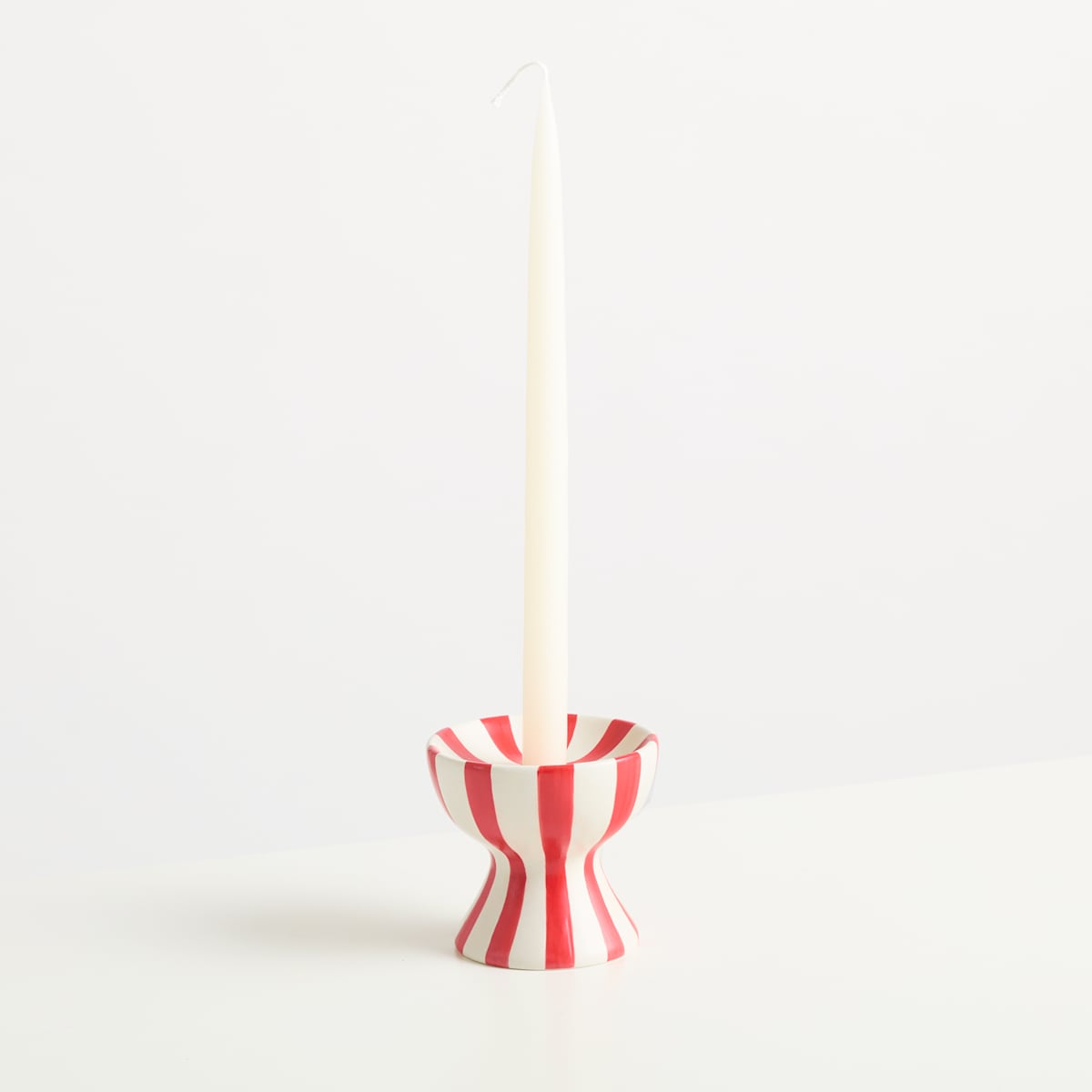 Der Keramik Kerzenhalter in Rot ist eine stilvolle Ergänzung für jedes Zuhause und bringt mit seinem angesagten Design eine gemütliche Atmosphäre in jeden Raum. Mit einer Höhe von 10 cm und einem Durchmesser von 11,3 cm oben ist er perfekt für Stabkerzen und sorgt für ein harmonisches Lichtspiel. Die matt glasierte Oberfläche und die karamellfarbenen vertikalen Streifen verleihen dem Kerzenhalter eine elegante Note, die in modernen sowie klassischen Einrichtungsstilen glänzt. Die Kerzentülle hat eine Tiefe von mindestens 2 cm und einen Durchmesser von 2,2 cm, was die Verwendung unterschiedlicher Kerzen ermöglicht. Ob auf dem Esstisch, im Wohnzimmer oder auf der Fensterbank – dieser Kerzenhalter setzt stilvolle Akzente und schafft sofort eine einladende Stimmung. Wie wäre es, das Zuhause mit einem besonderen Deko-Element zu bereichern? Der Keramik Kerzenhalter Karamell ist nicht nur praktisch, sondern auch ein echter Blickfang, der jedem Raum das gewisse Etwas verleiht.