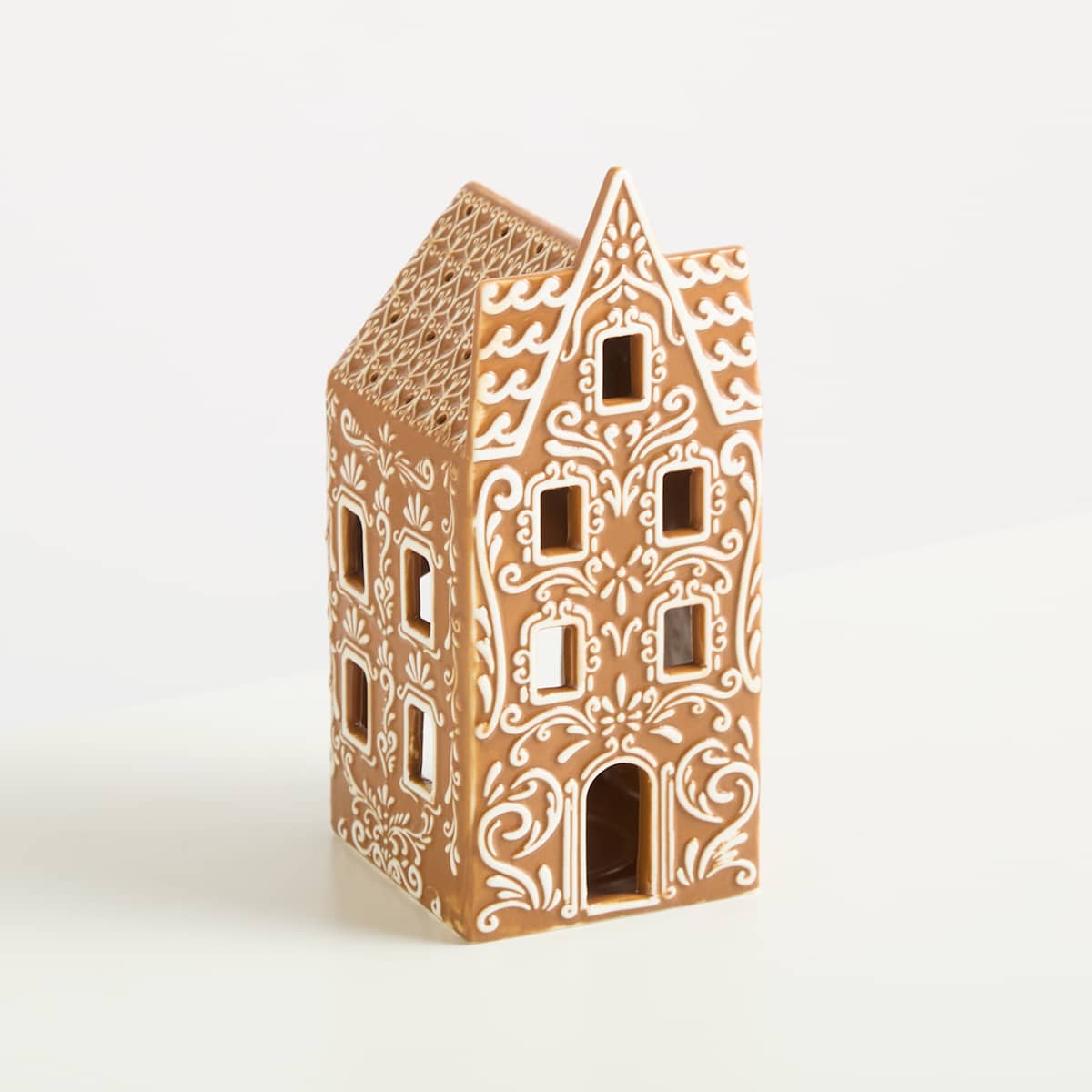 Das Keramik Lebkuchenhaus Dach mit bringt festliche Stimmung in jedes Zuhause und verleiht der Dekoration einen charmanten Akzent. Mit einer Höhe von 16,5 cm und einer Breite von 7 cm ist es die perfekte Ergänzung für die weihnachtliche Deko oder eine süße Winterlandschaft. Das ansprechende Lebkuchendesign lässt sofort an die köstlichen Backtraditionen der Feiertage denken und sorgt für ein warmes, einladendes Ambiente. Die feine Keramikoberfläche und die detailreiche Ausarbeitung des Daches verleihen dem Stück nicht nur eine besondere Eleganz, sondern machen es auch zum perfekten Blickfang. Dieses Keramik Lebkuchenhaus Dach sieht einfach zum Anbeißen aus und lässt die Vorfreude auf die besinnlichen Tage steigen. Ob auf dem Tisch, dem Regal oder als Teil einer festlichen Dekoration – dieses Accessoire ist ein absolutes Must-have, das jedem Raum eine süße Note verleiht. Perfekt, um Freunde und Familie in eine gemütliche Atmosphäre zu entführen!
